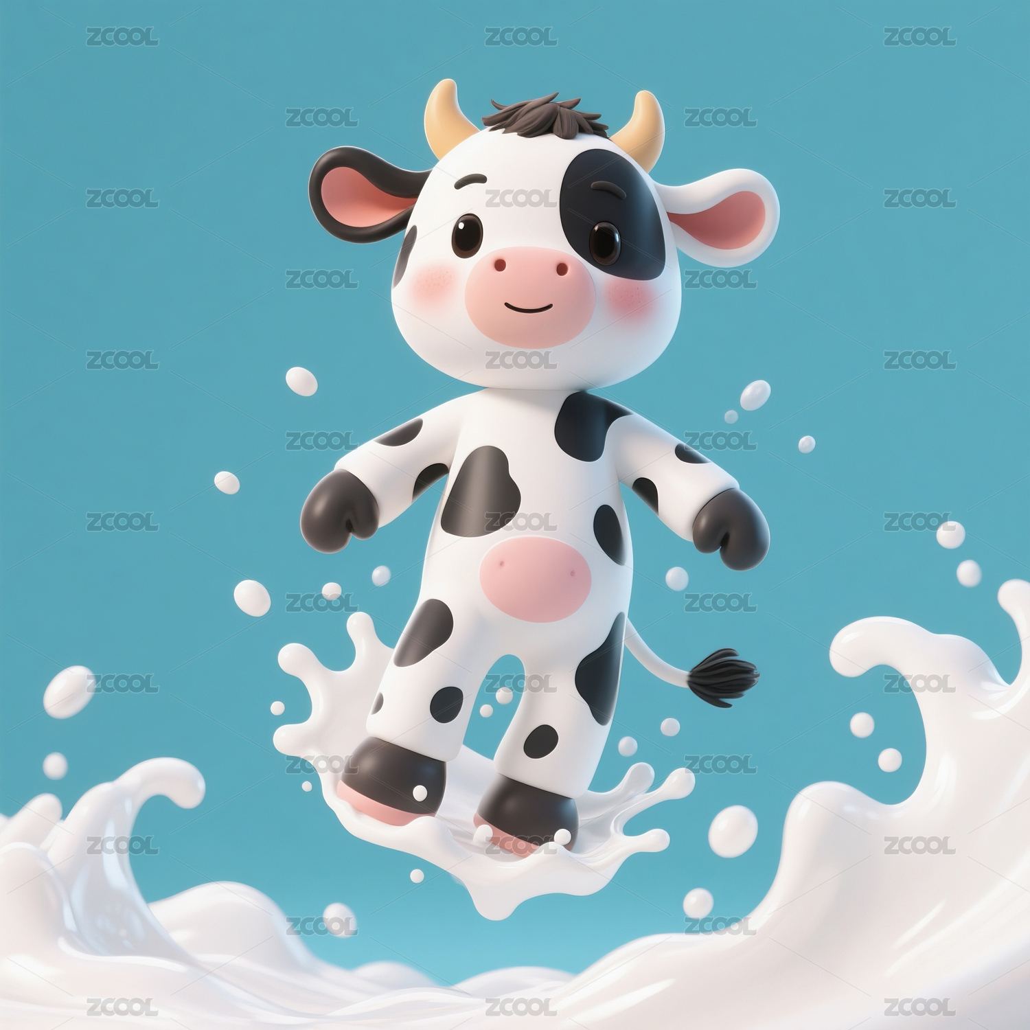 站在牛奶里的奶牛宝宝动漫卡通形象