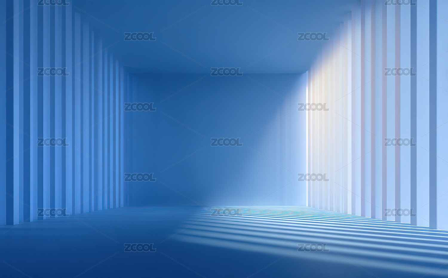 蓝色,空间,光影,线条,几何,炫酷,质感,抽象,建筑,场景