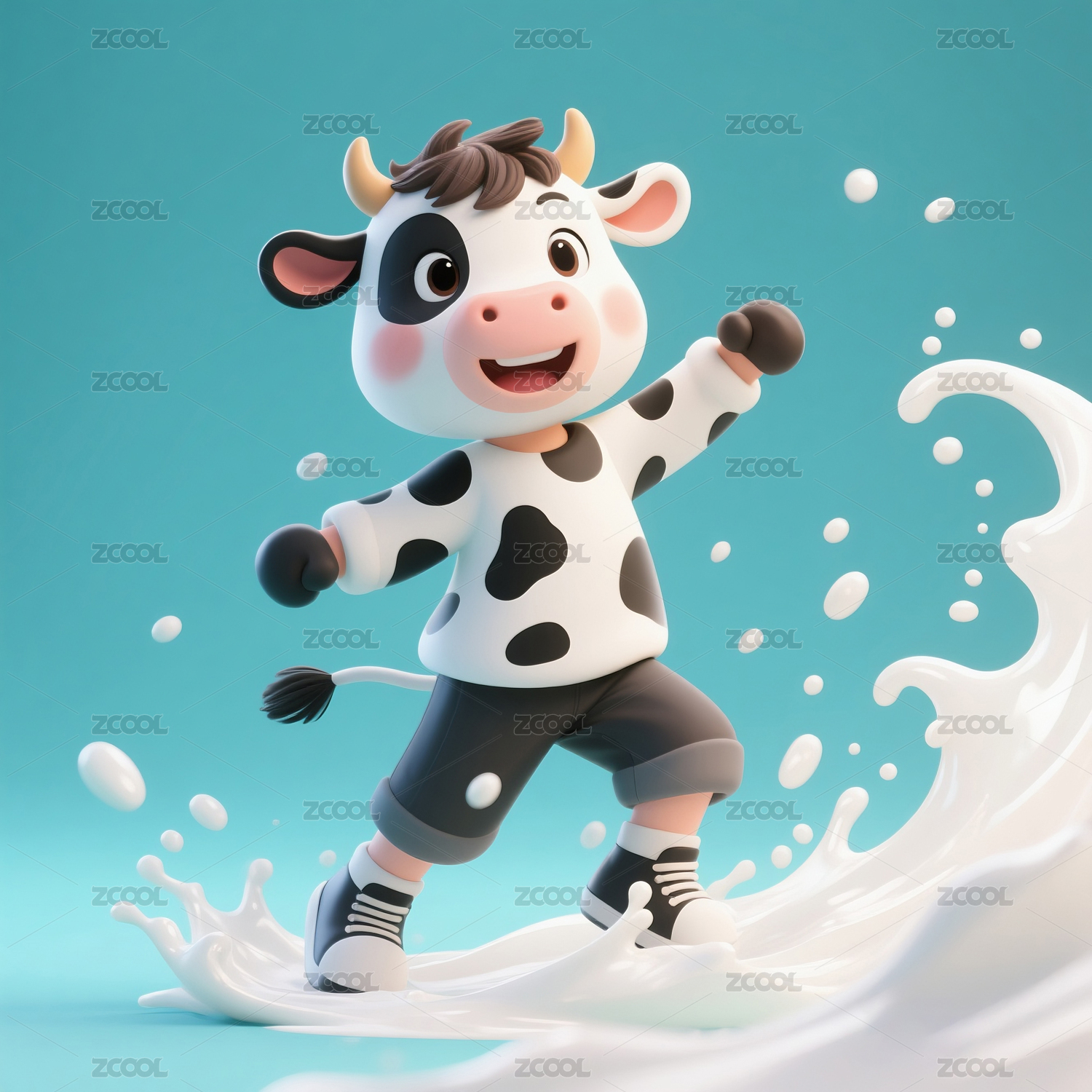 在牛奶里跳舞的奶牛宝宝动漫卡通形象