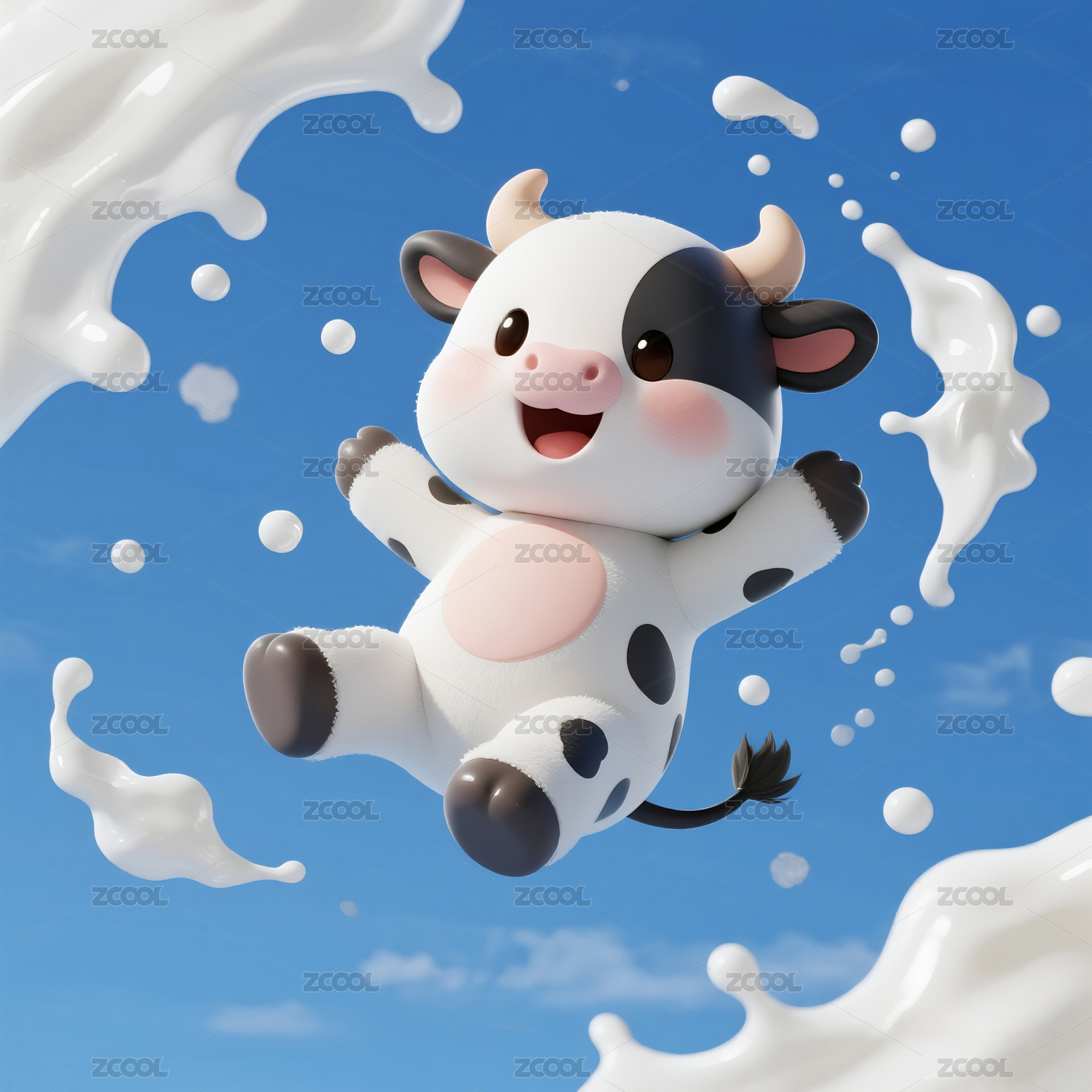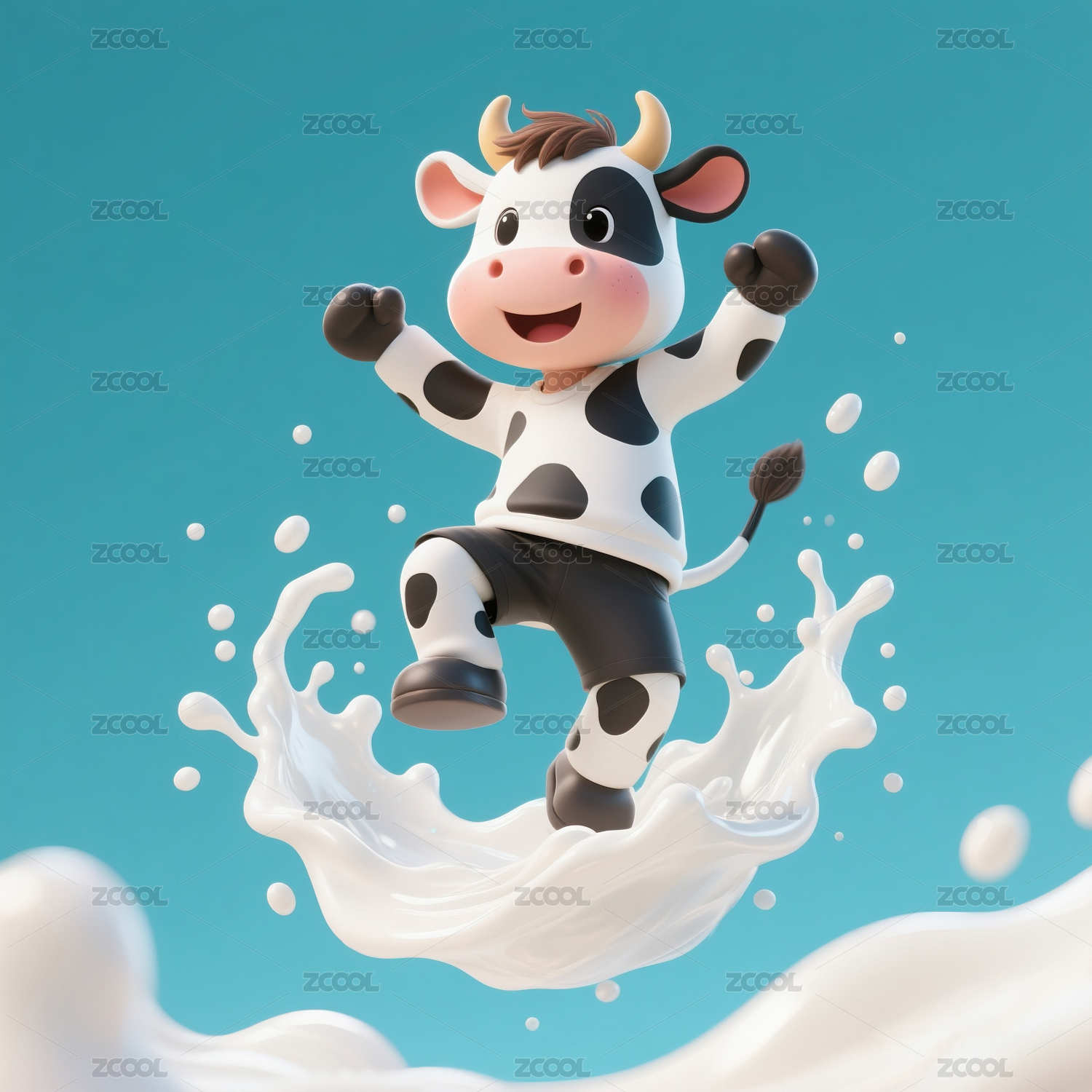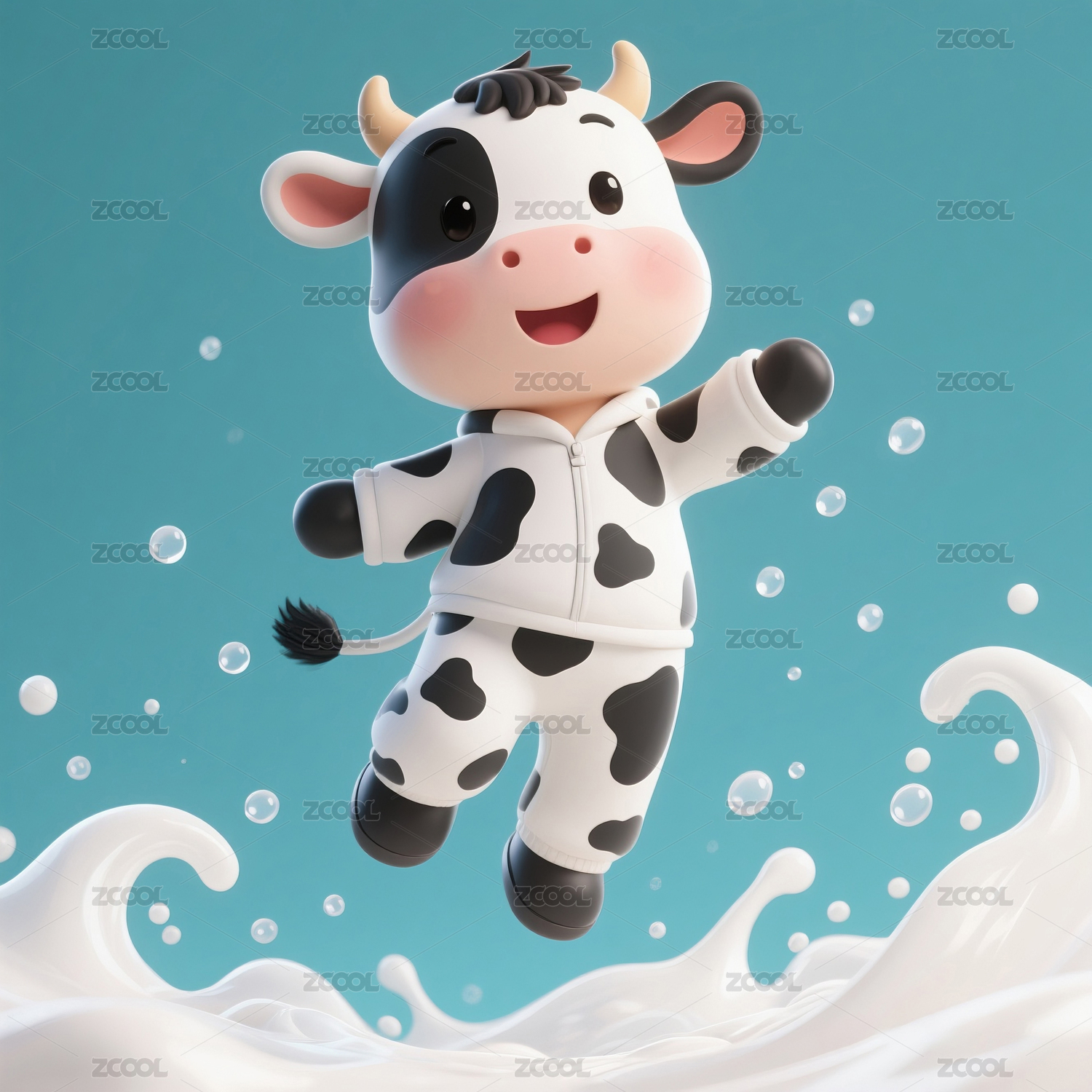 在牛奶里跳舞的奶牛宝宝动漫卡通形象