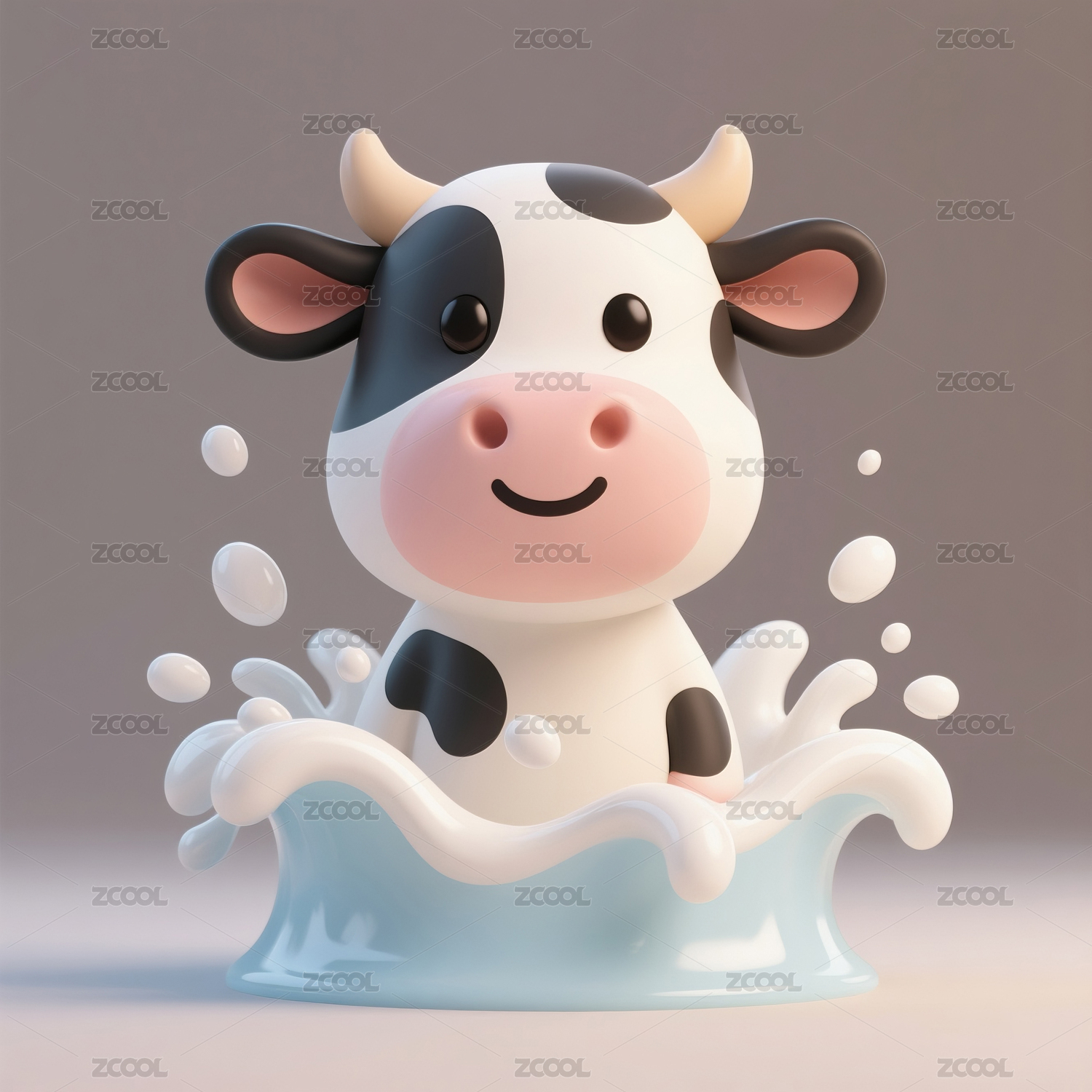 站在牛奶里的奶牛宝宝动漫卡通形象