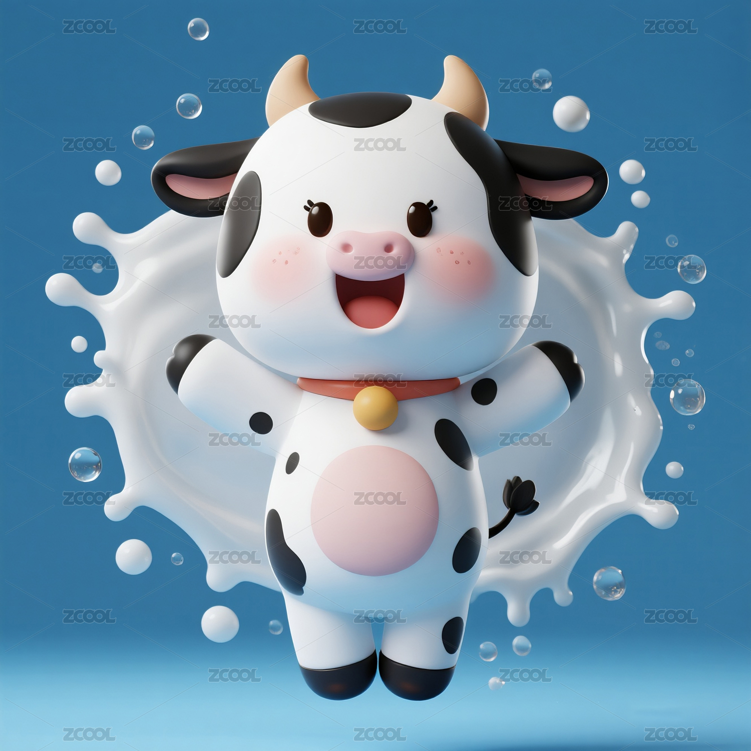 在牛奶里跳舞的奶牛宝宝动漫卡通形象