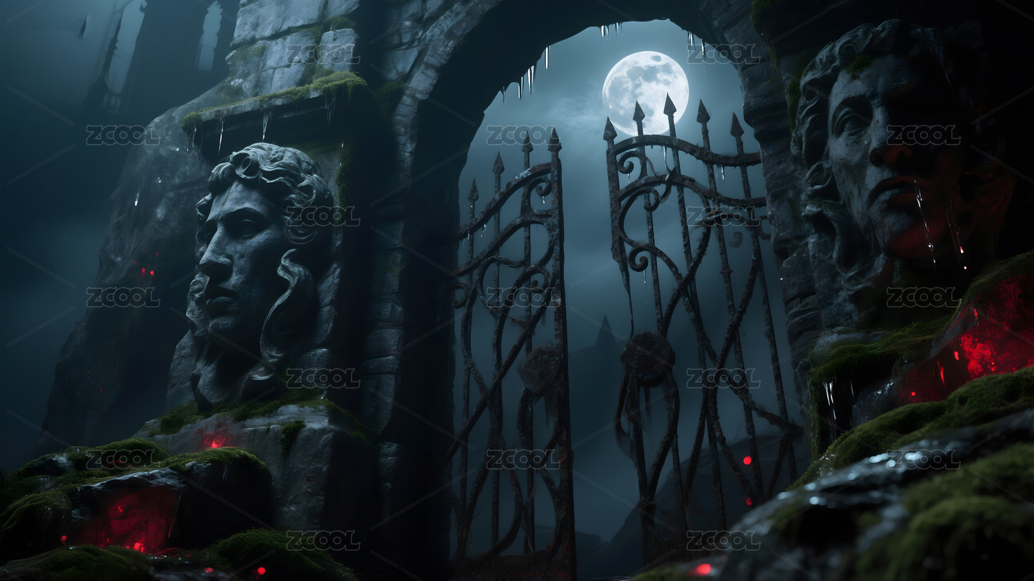 森林古石门奇幻场景
