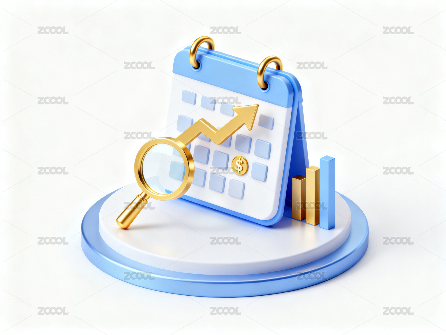 日历,图表,放大镜,箭头,增长,数据,分析,商务,时间,管理