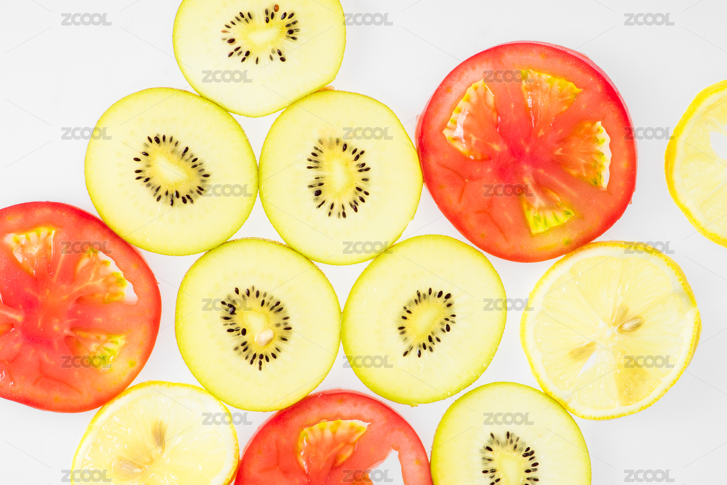 白底上摆放着猕猴桃切片