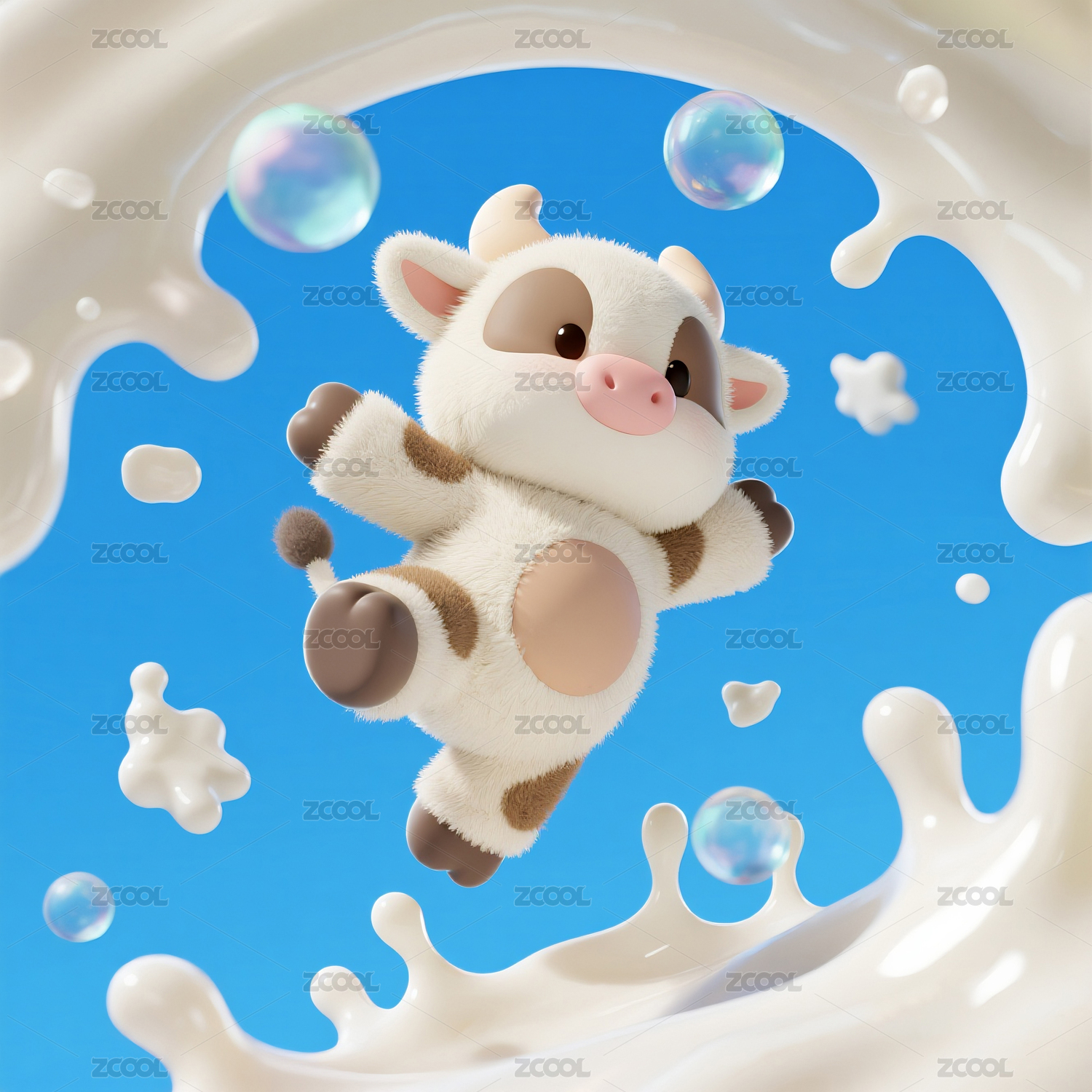 在牛奶里跳舞的奶牛宝宝动漫卡通形象