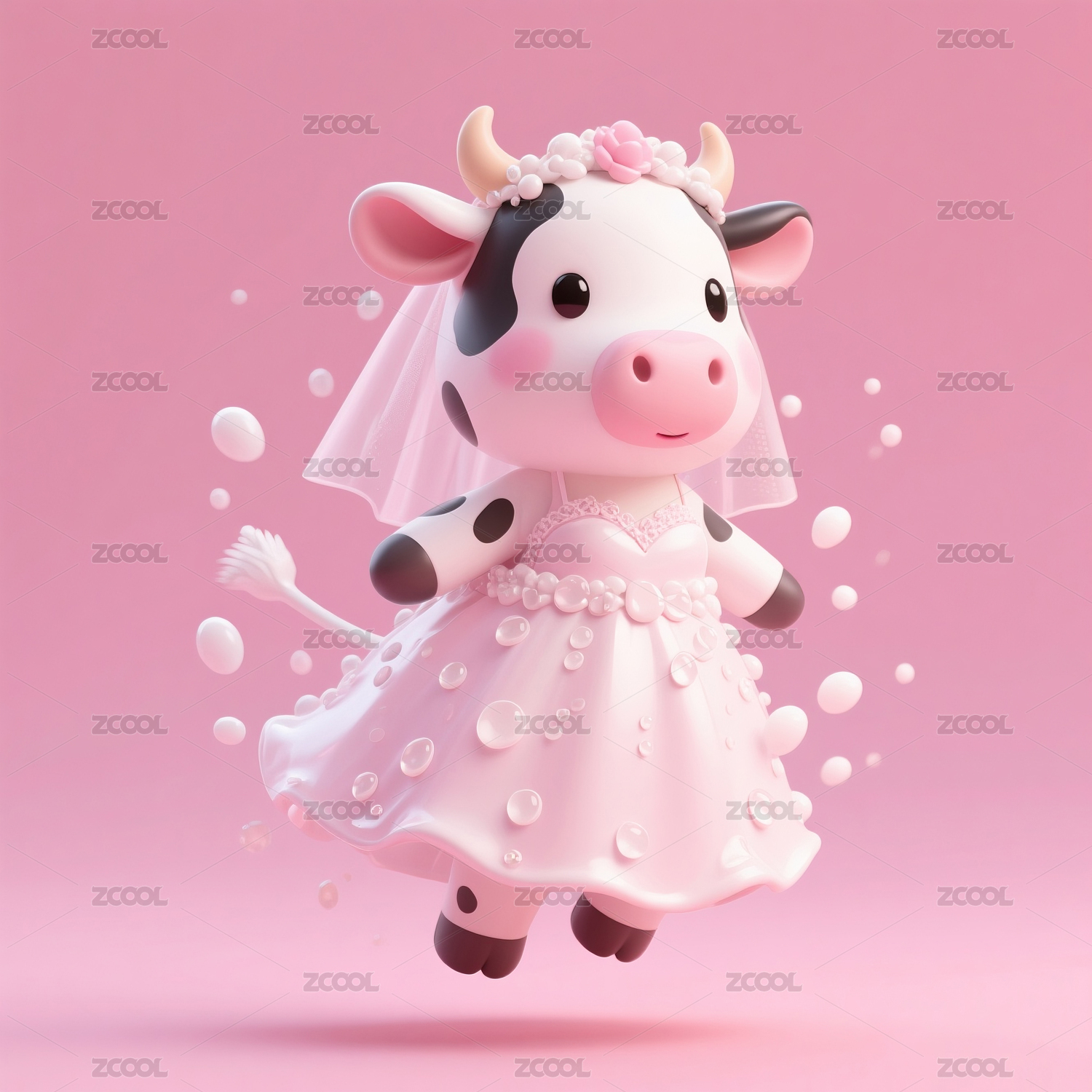 在牛奶里跳舞的奶牛新娘动漫卡通形象