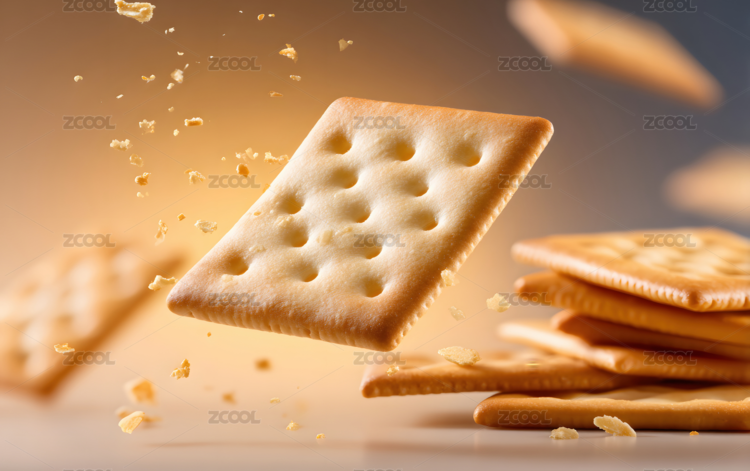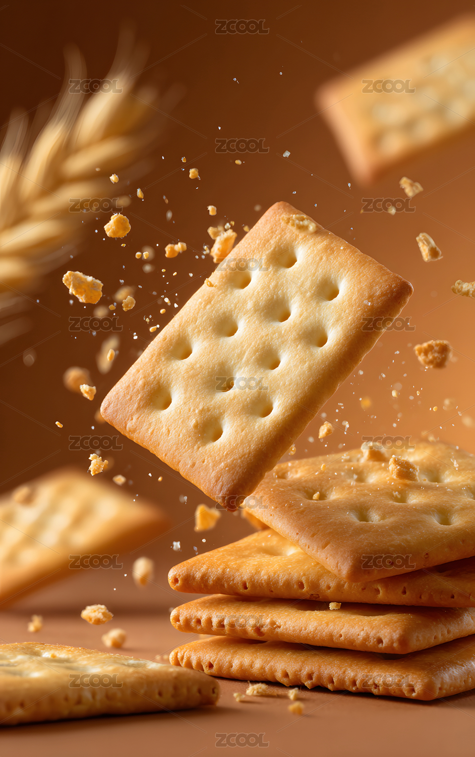 零食苏打饼干掉落黑色背景瞬间高速棚拍
