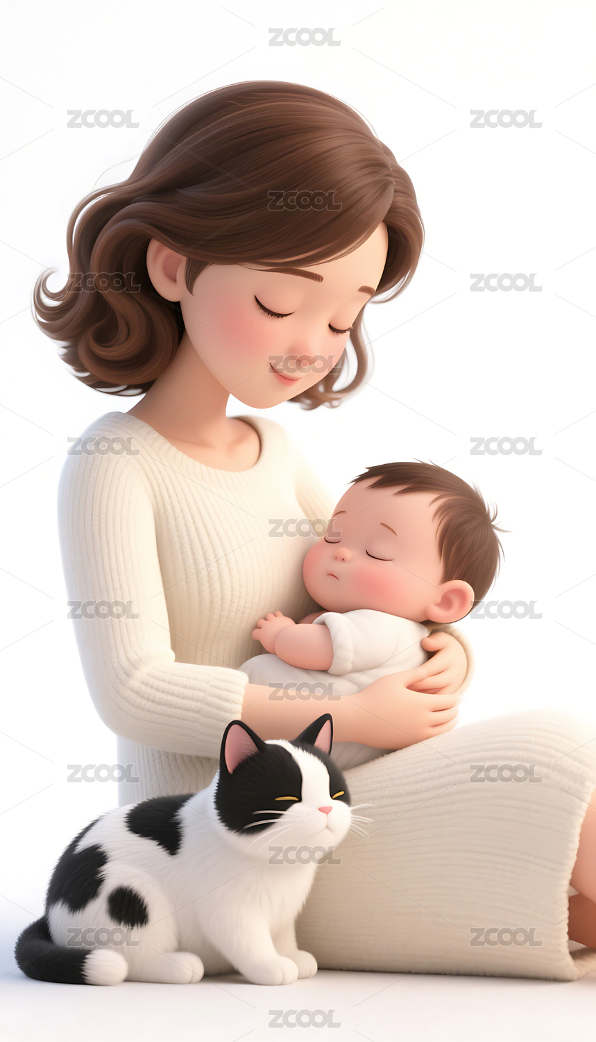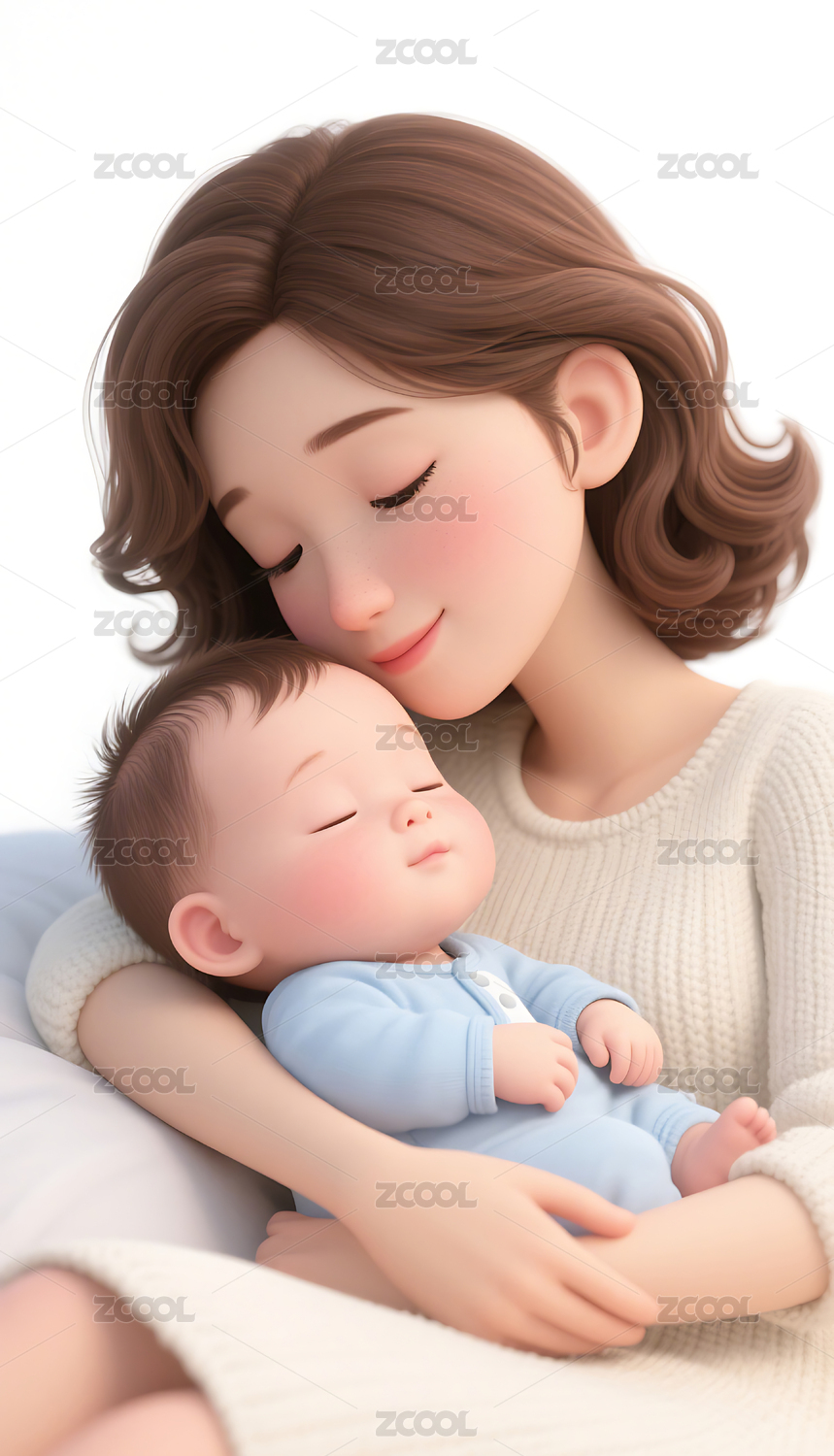 一个女人抱着孩子3D人物插画