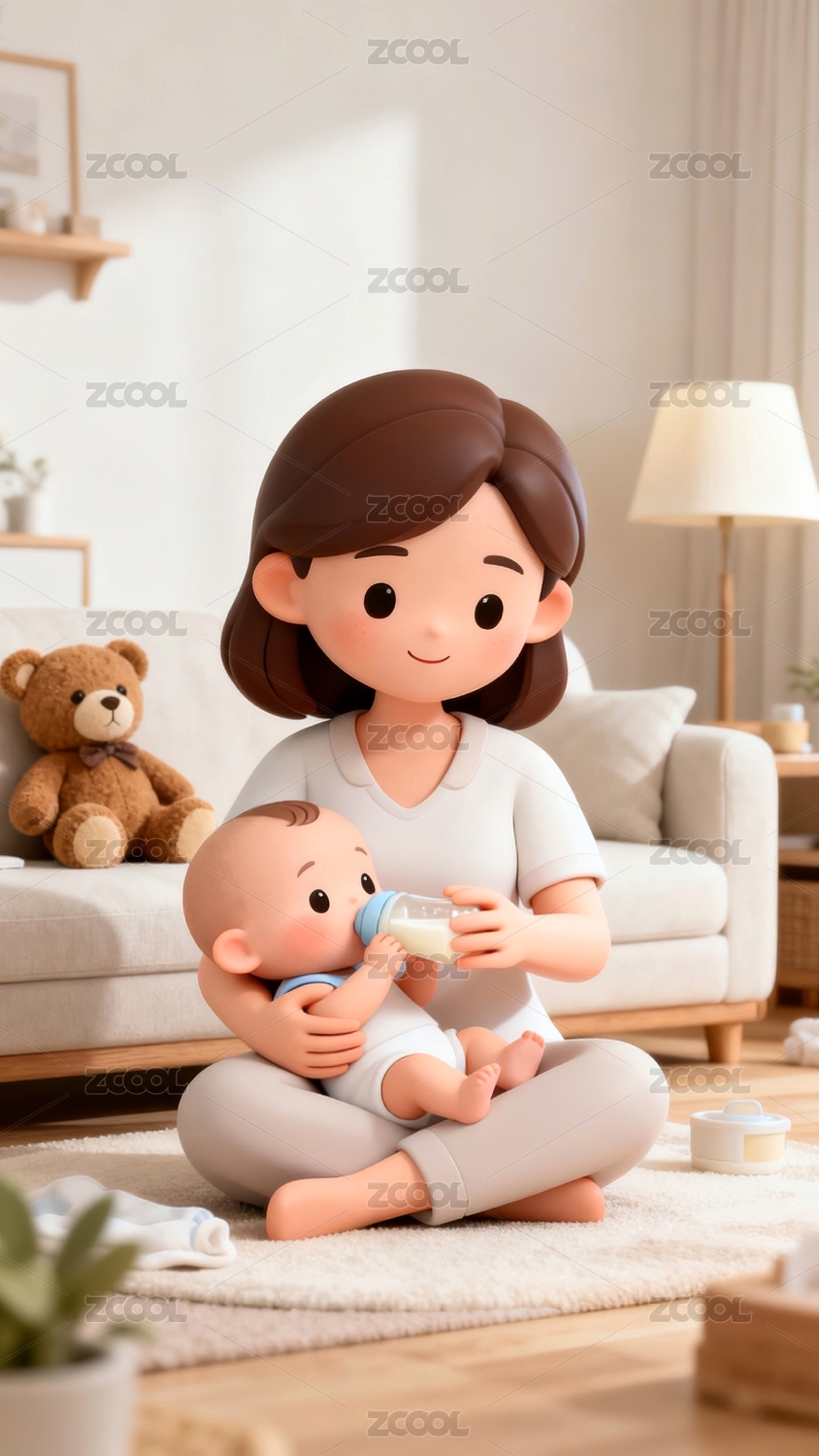 母子温馨居家育儿场景