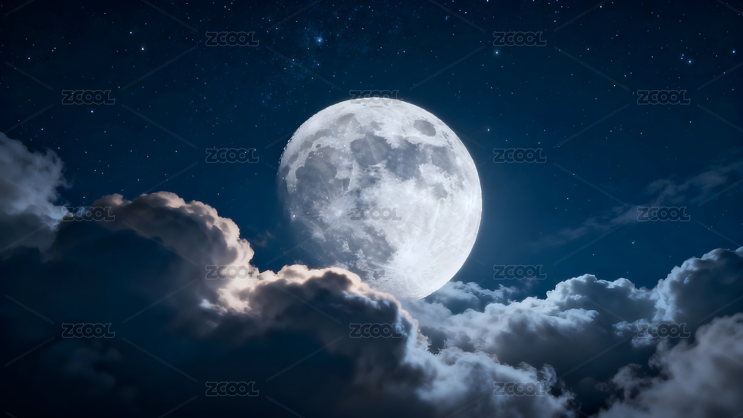 梦幻月亮背景唯美插图海上满月高清壁纸