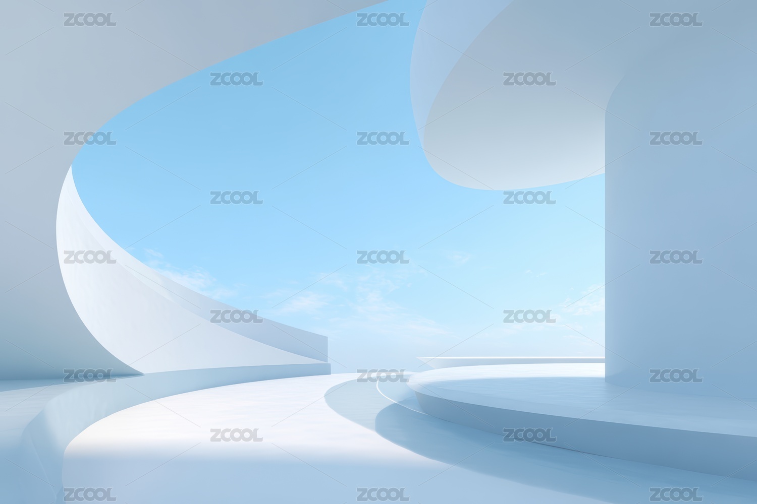 白色抽象建筑空间地面与蓝色天空背景