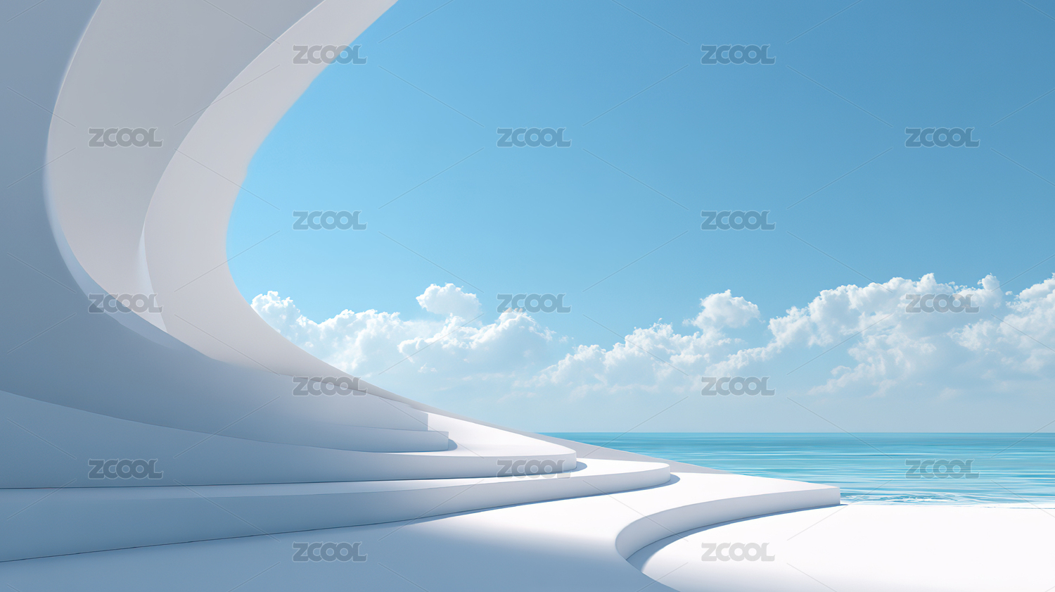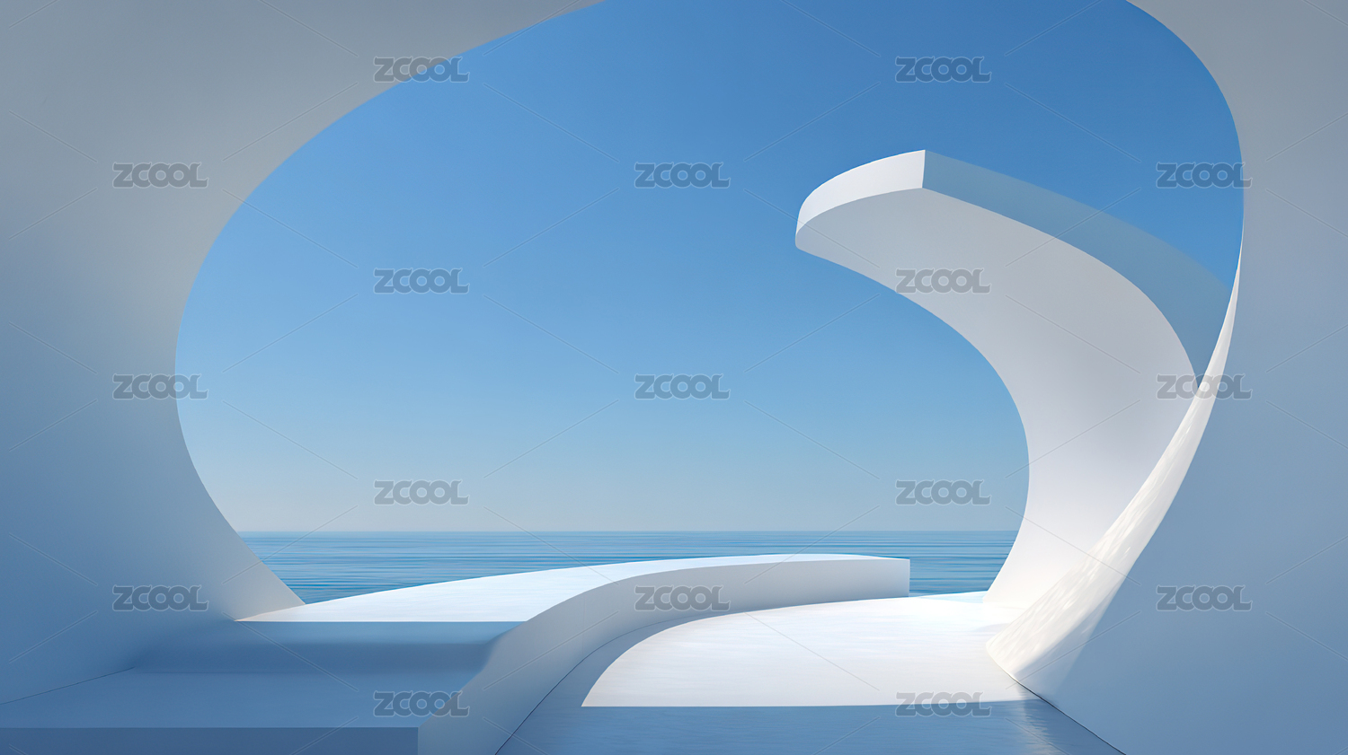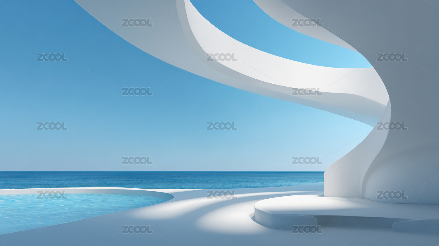 白色曲线建筑与海洋景观