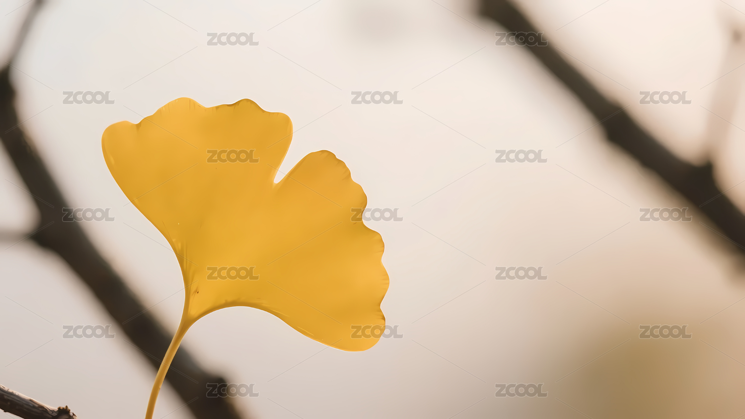 秋天阳光下的金黄色银杏树叶,自然风景背景