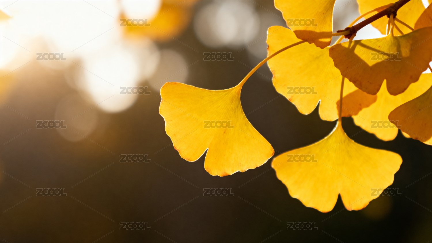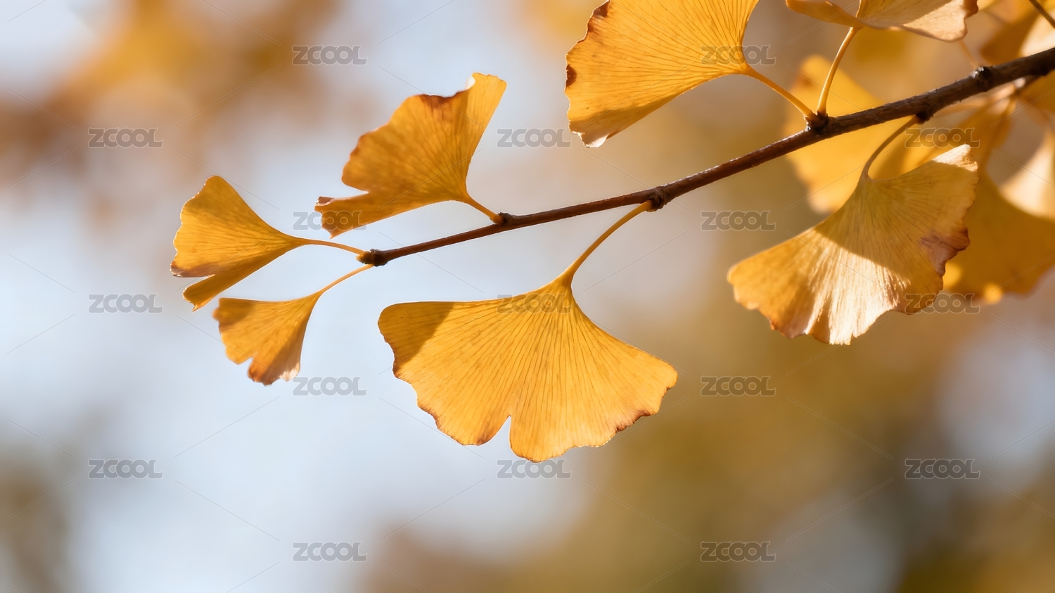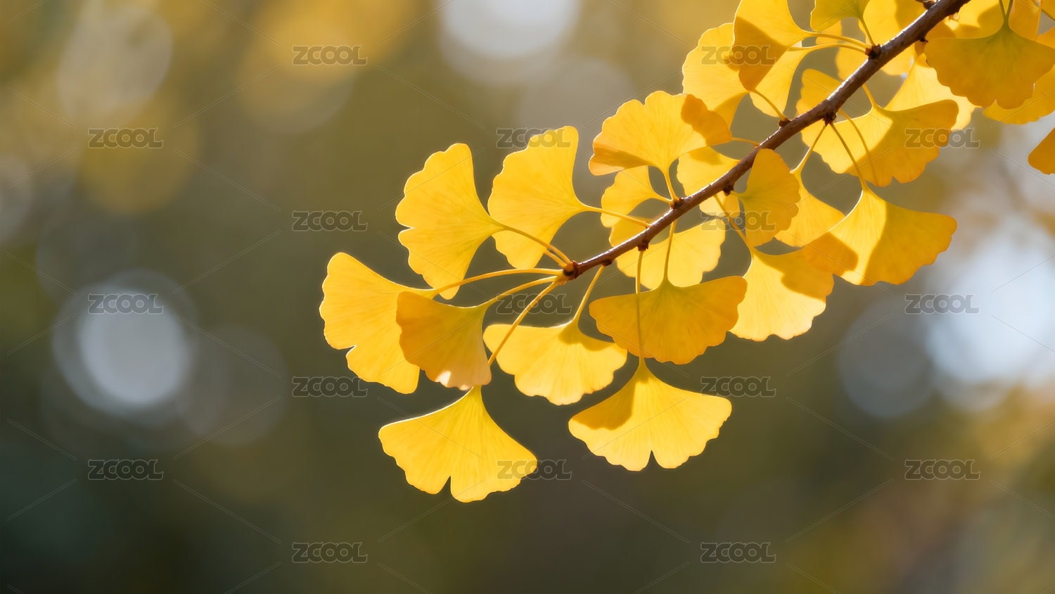 宁静,黄色,绿色,柔和,背景,自然,树叶,银杏,秋日,扇形