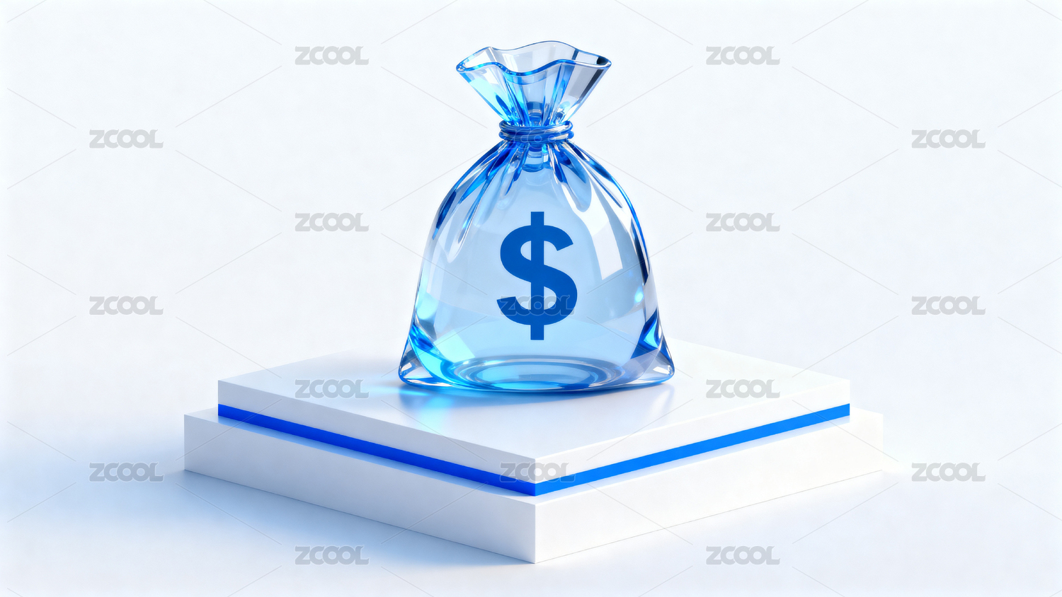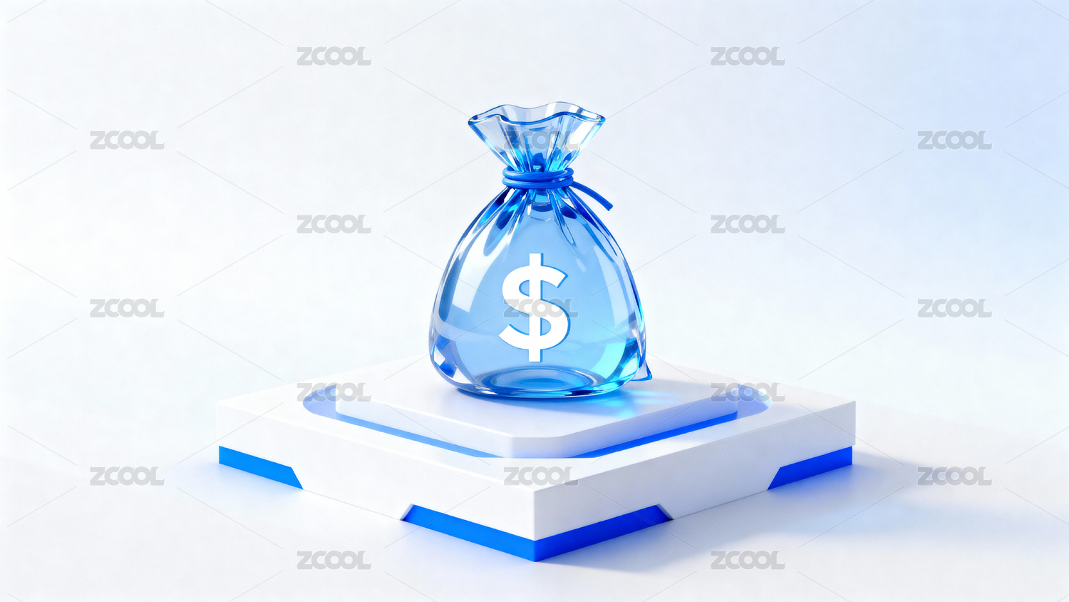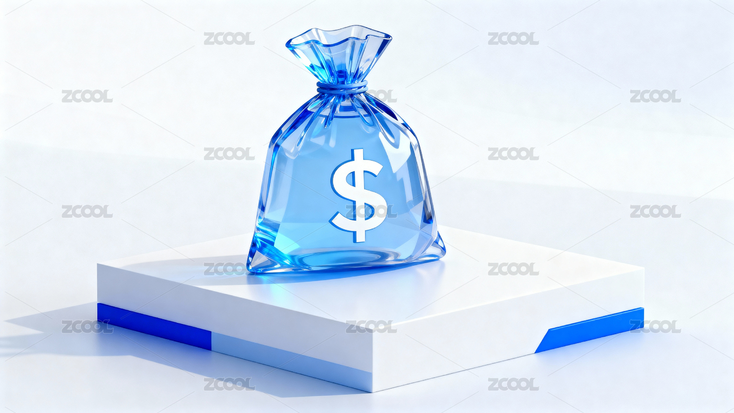 蓝色金钱袋置于白色台座