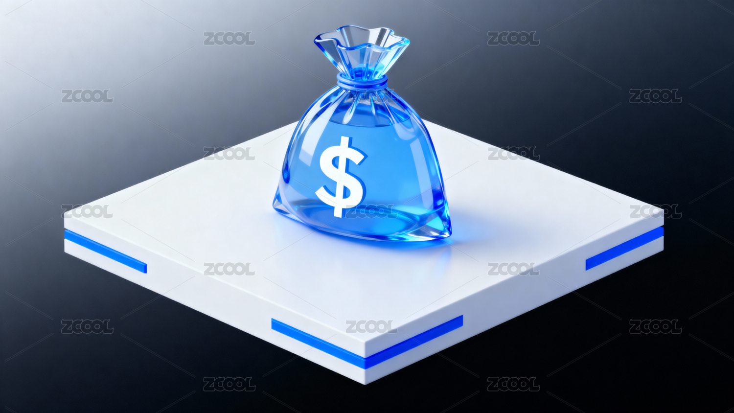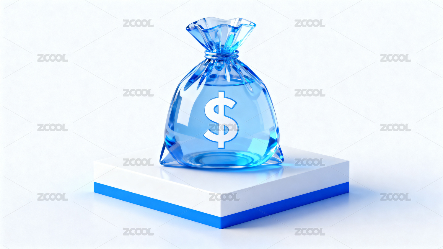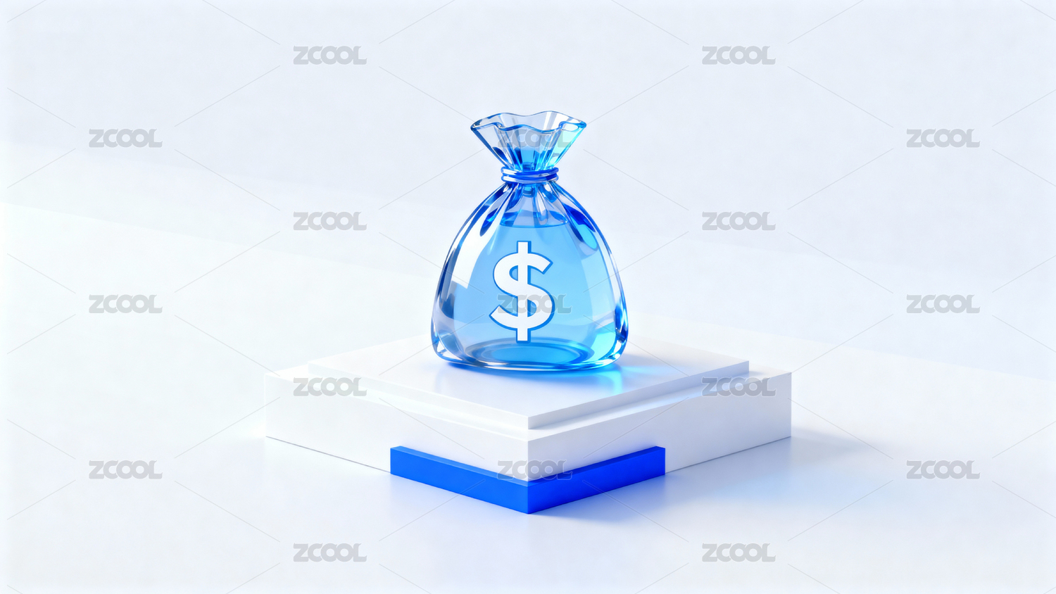 蓝色金钱袋置于白色台座