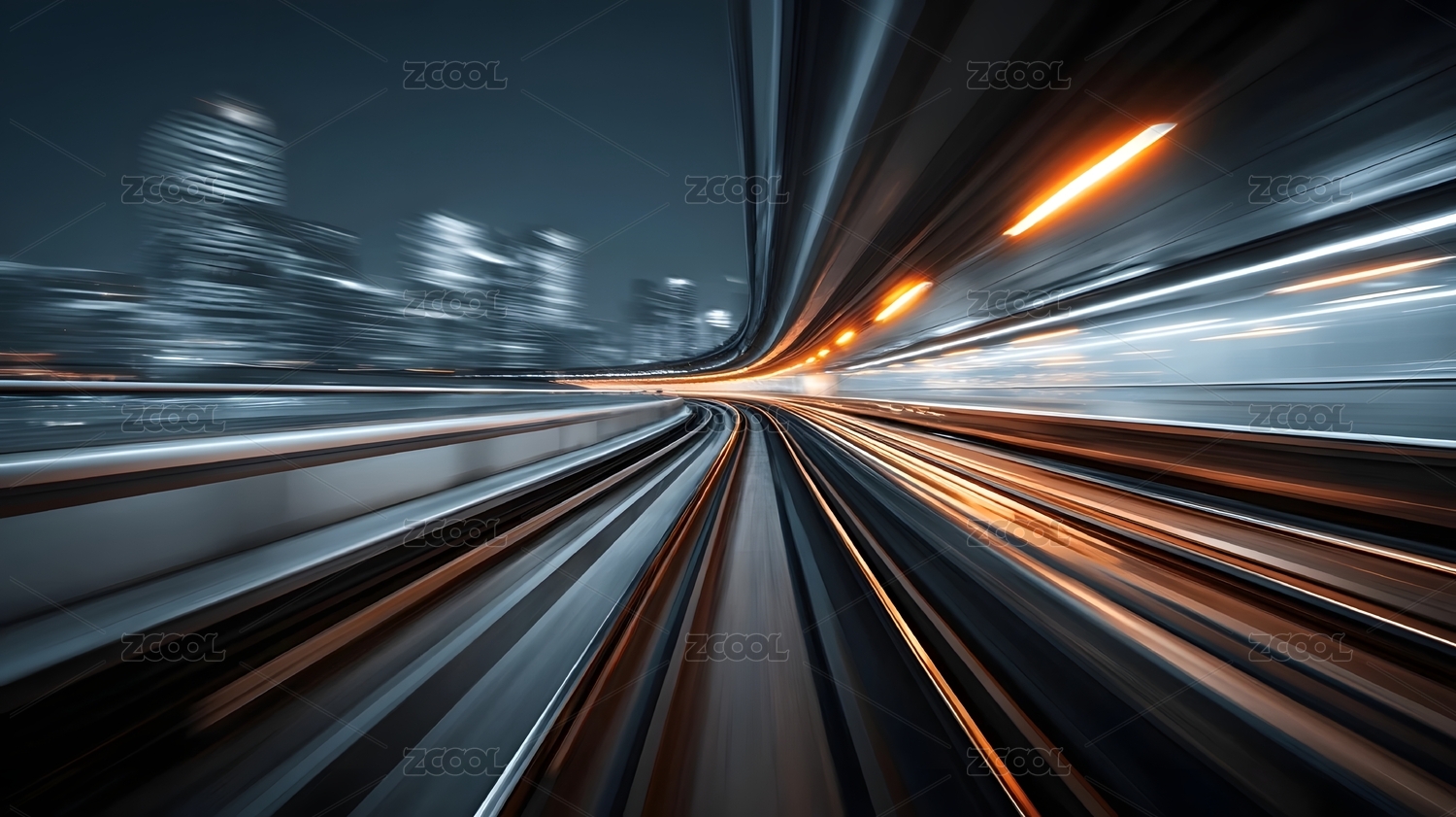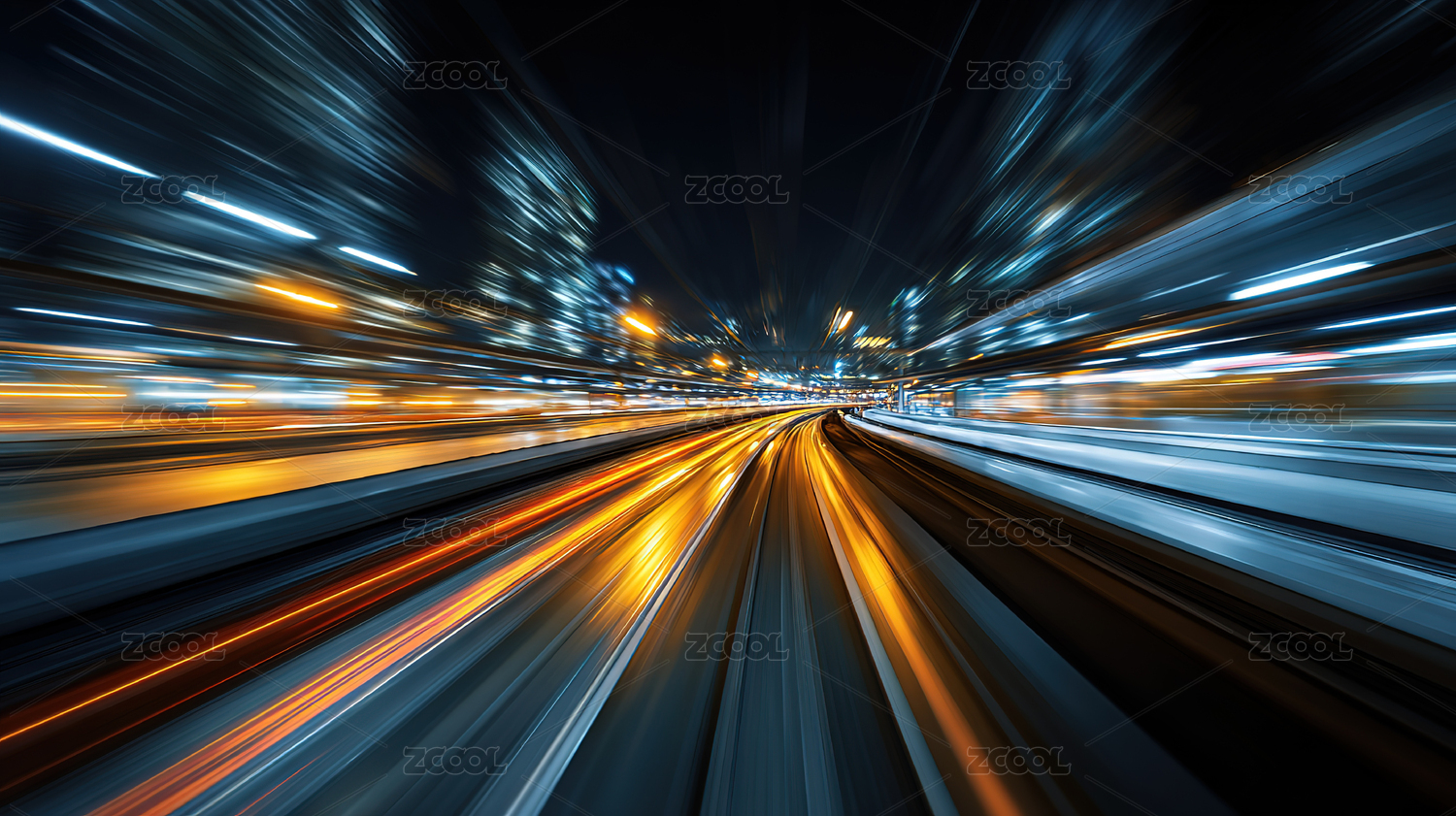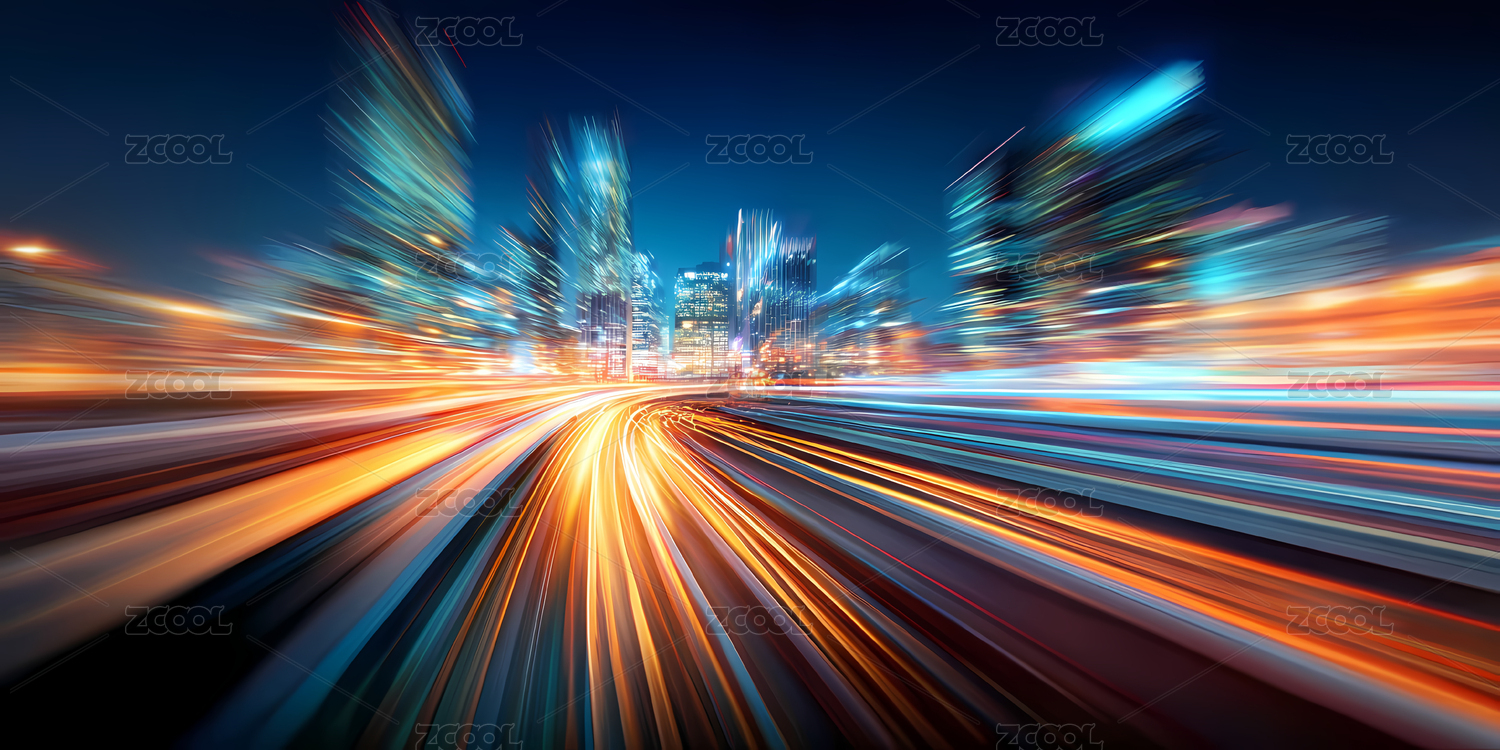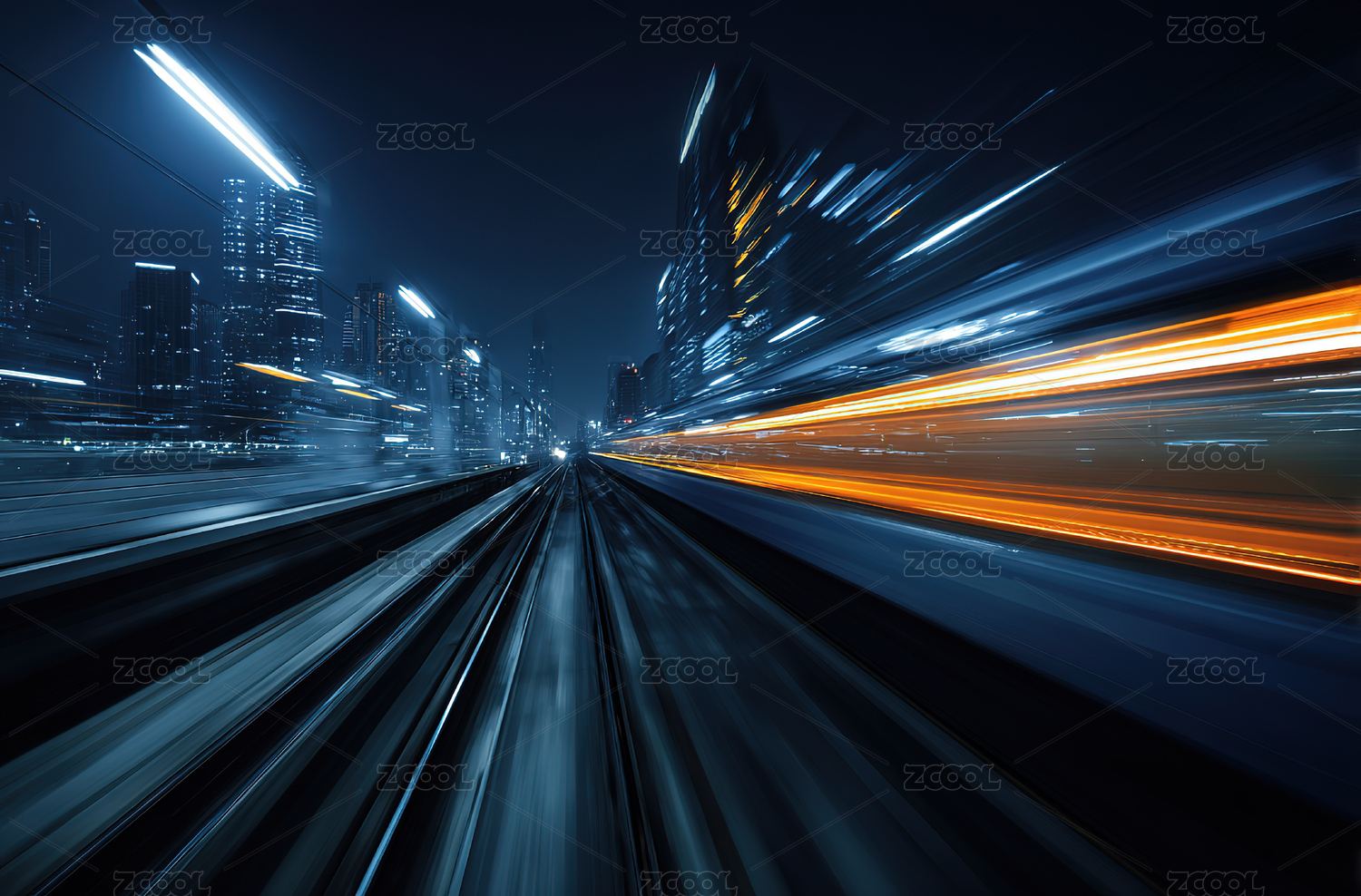 城市夜景光轨疾驰 速度与激情 科幻未来