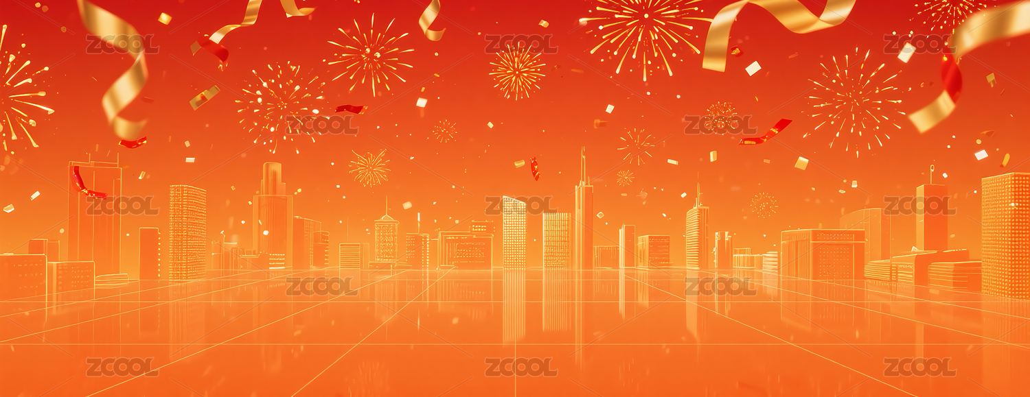 渐变,天空,城市,光斑,烟花,高楼,夜景,剪影,节日,橙红