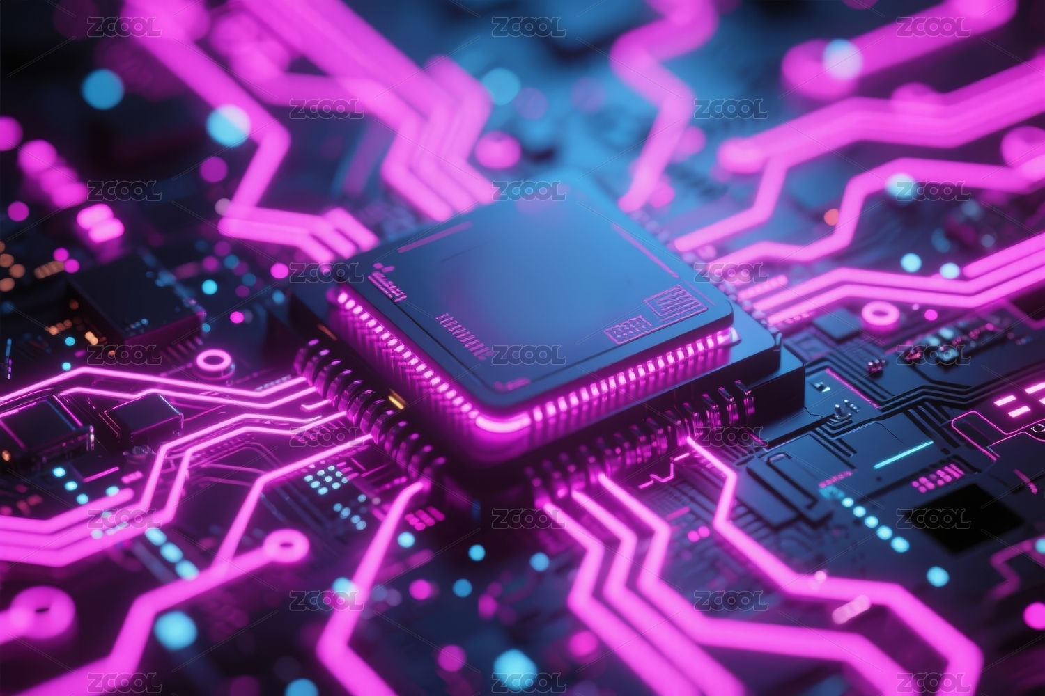紫色中央处理器蓝色板