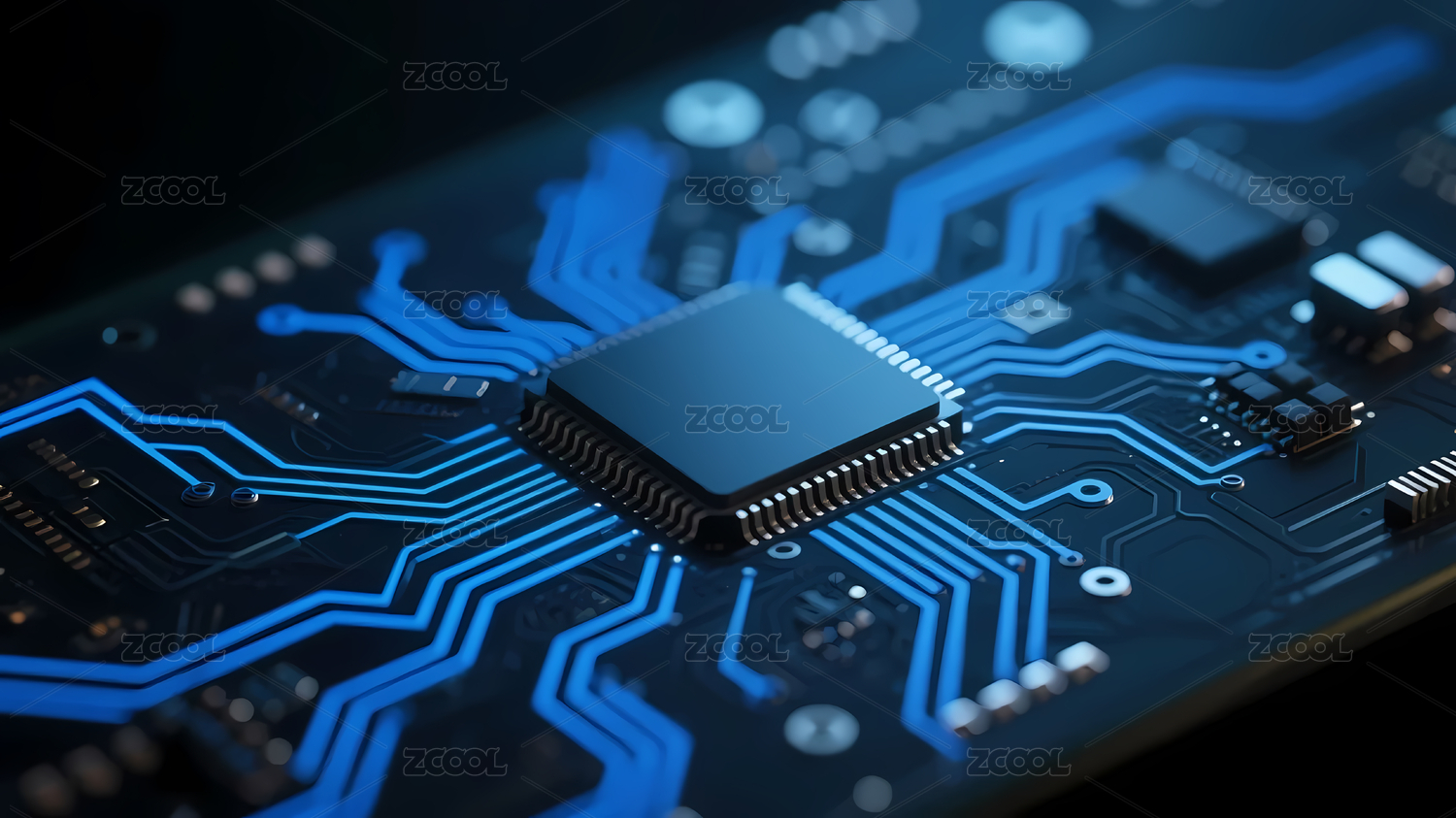蓝色科技芯片电路板特写