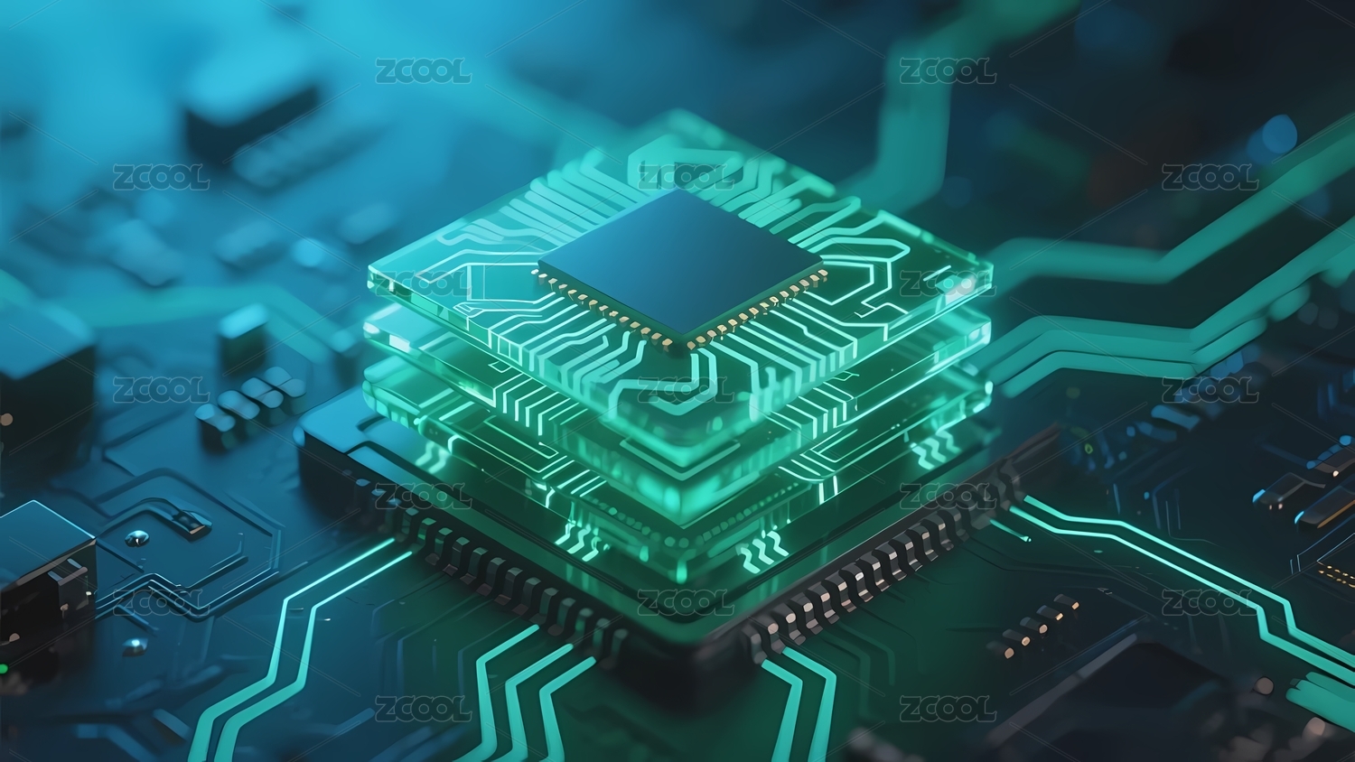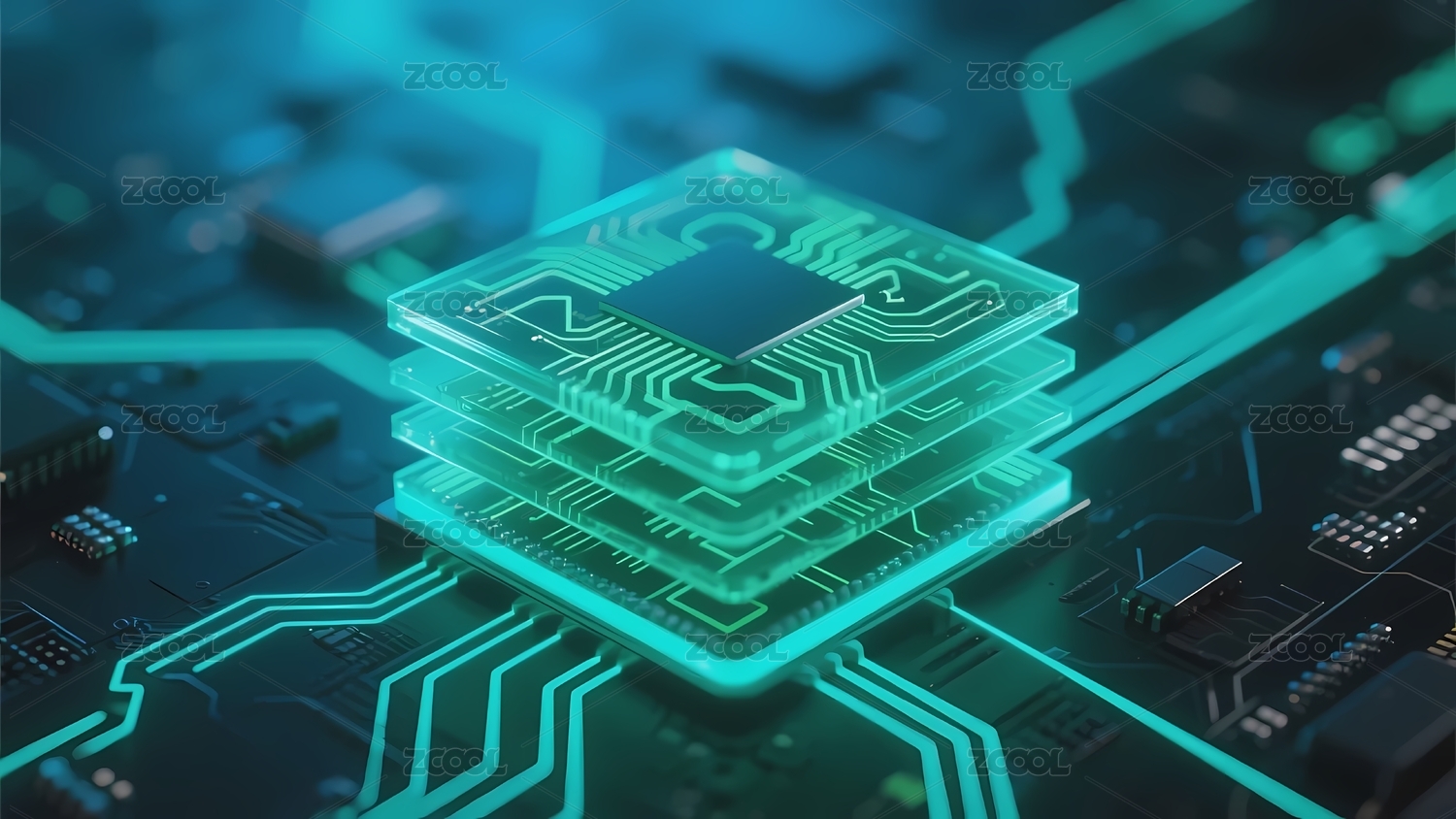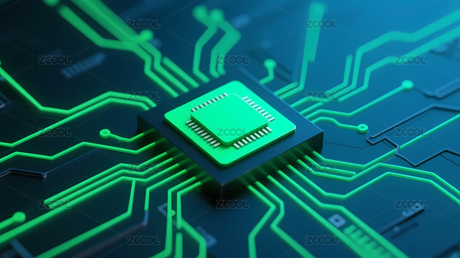 绿色,背景,设计,深蓝,发光,科技,未来,电路,芯片,复杂