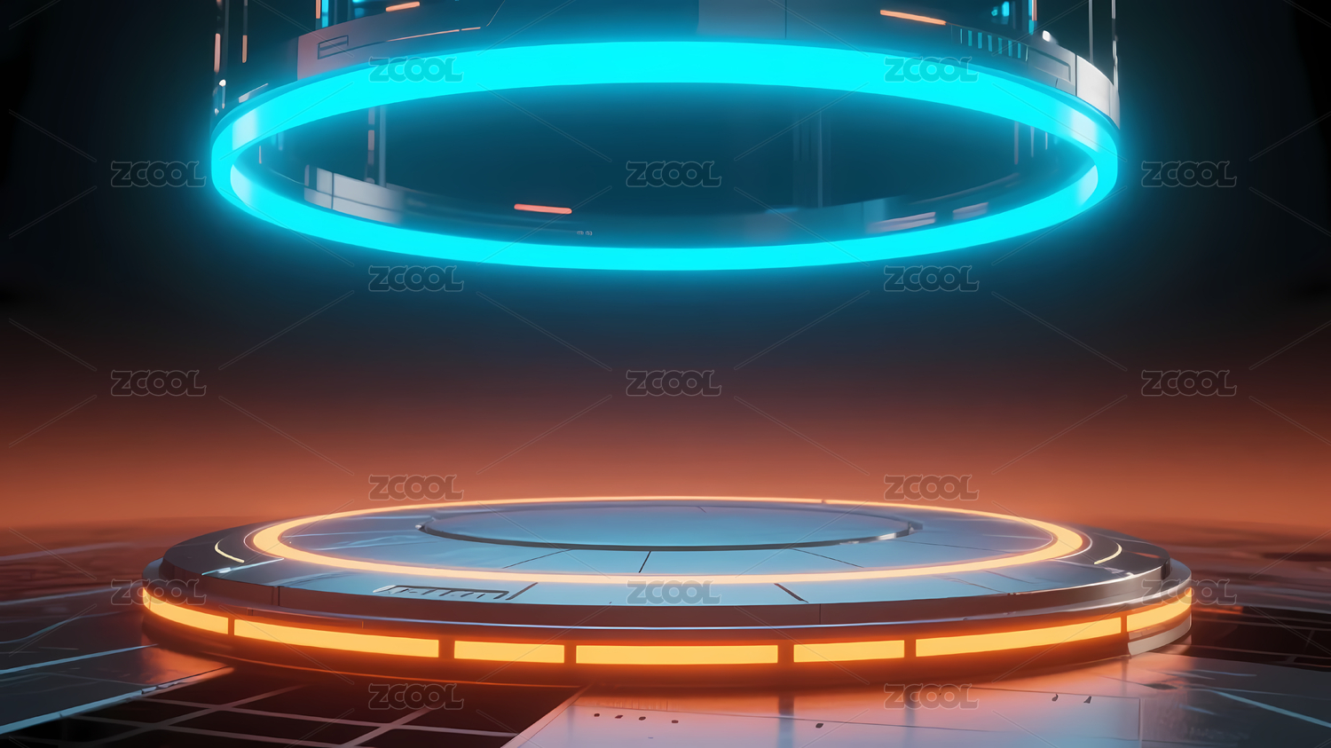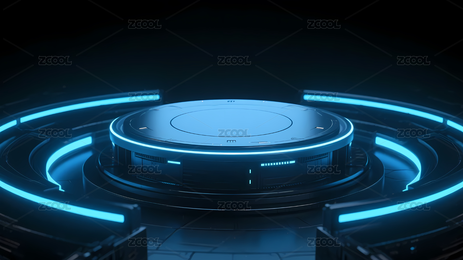 科技,未来,蓝色,抽象,发光,圆形,霓虹,平台,空间,冷色