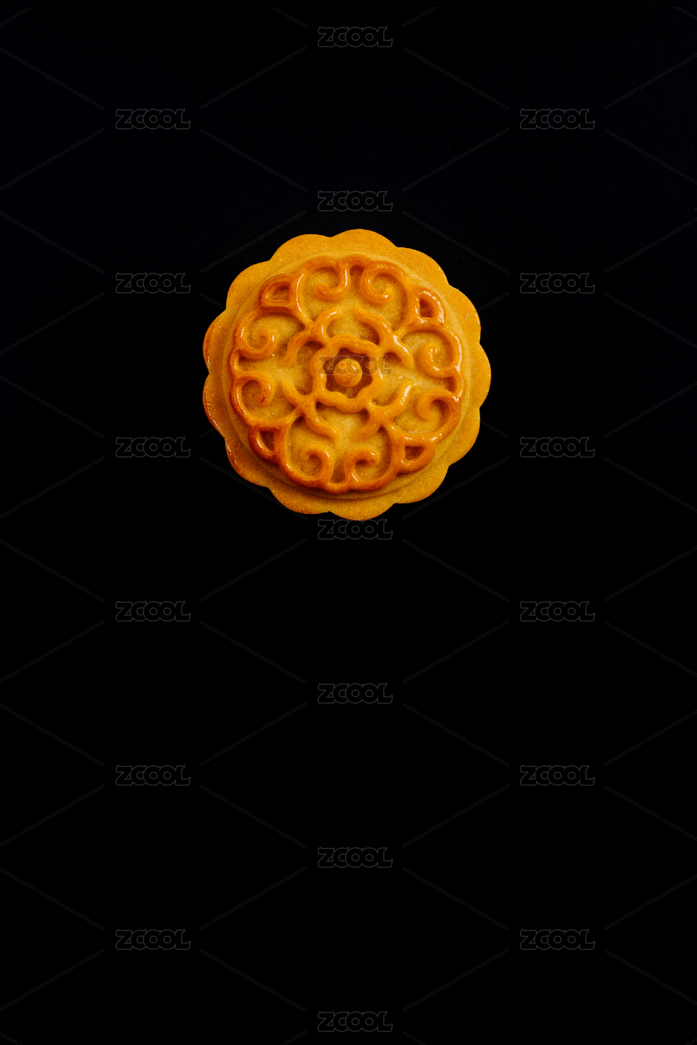 黑色背景下的中国传统中秋月饼特写