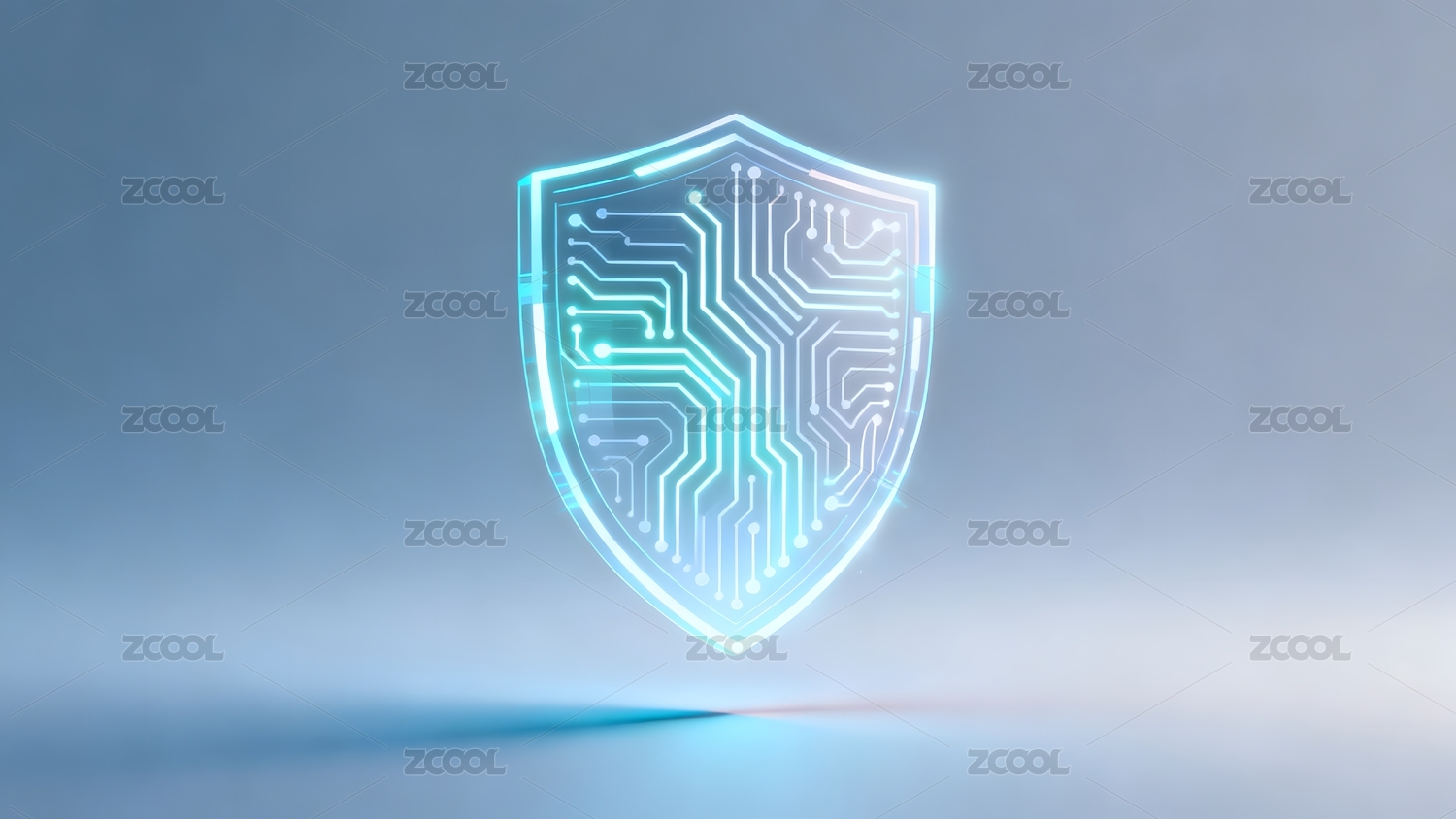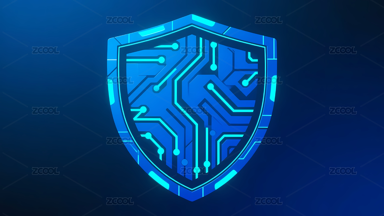 蓝色盾牌与电路图案的科技安全图