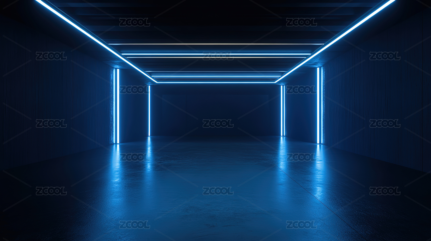 霓虹灯照亮的蓝色走廊