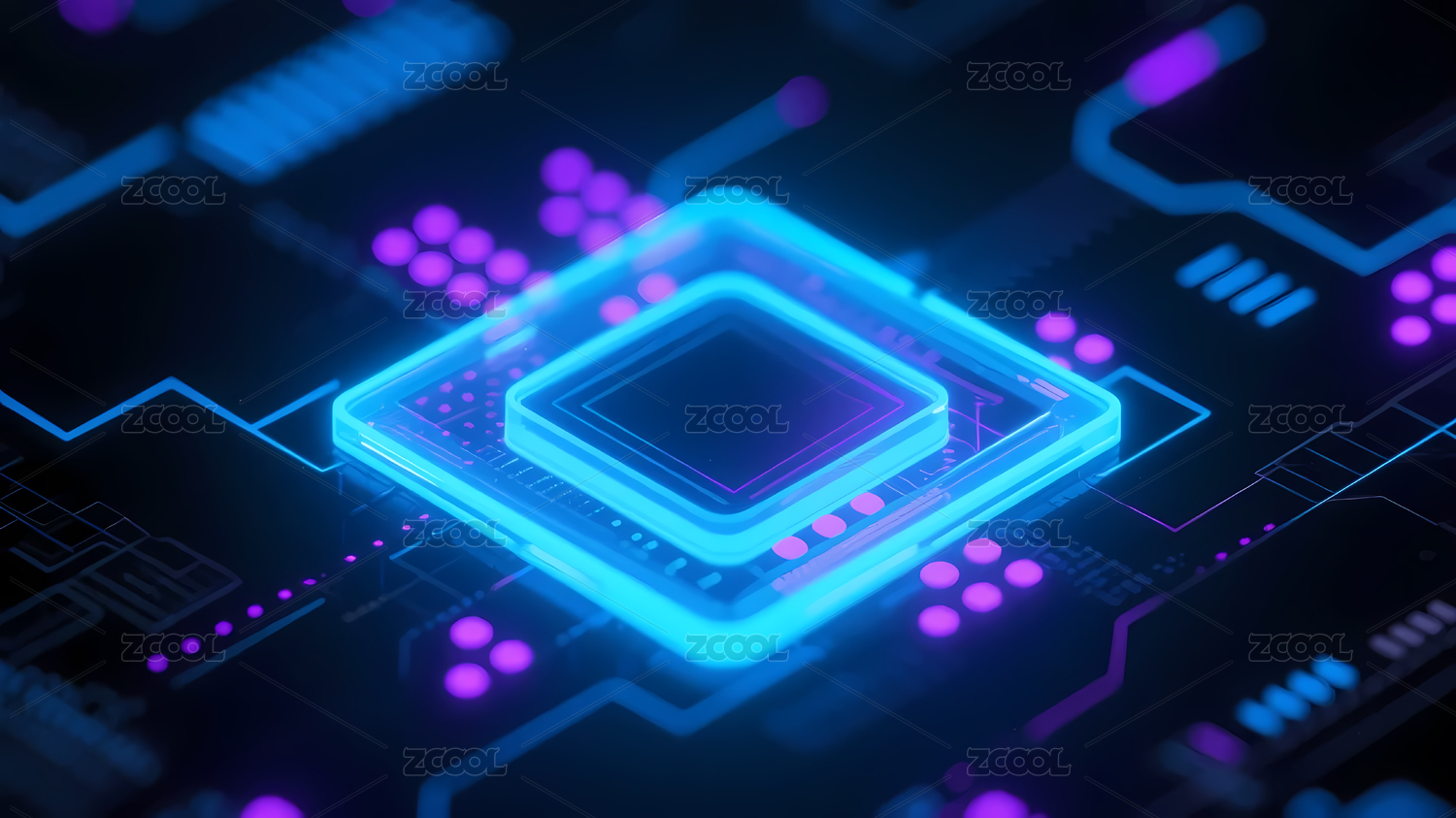 科技,深蓝,背景,电路,未来,发光,芯片,线条,紫色,立方体