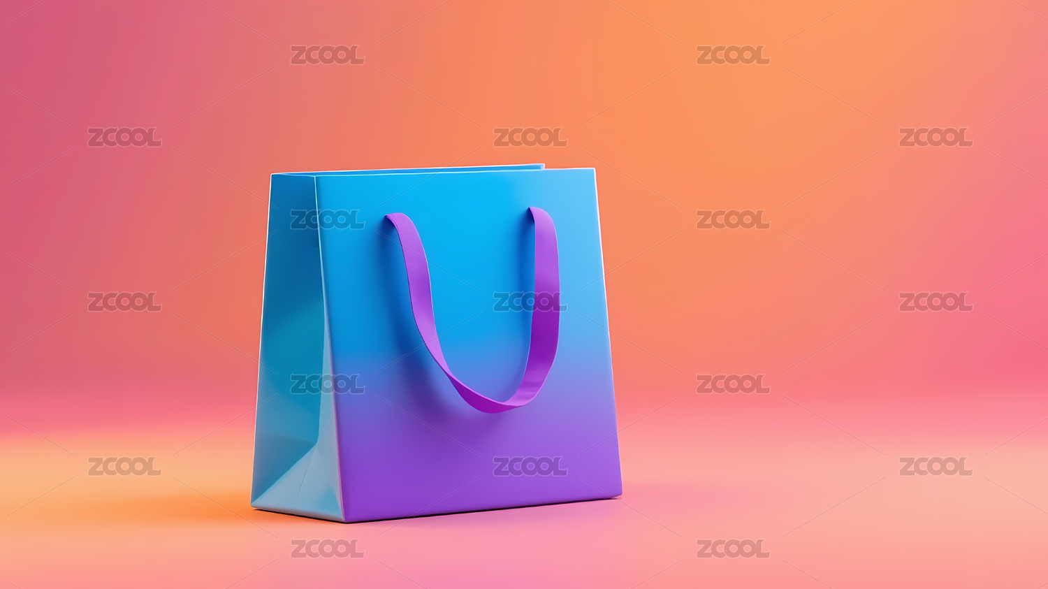 蓝色背景上蓝色购物袋特写图片手提袋礼品袋
