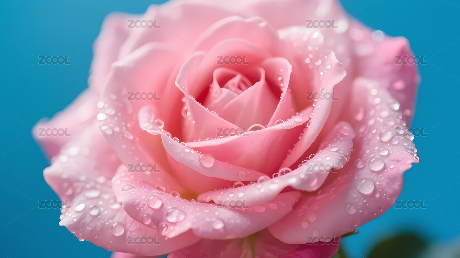 粉嫩玫瑰花瓣上的水珠水滴鲜花