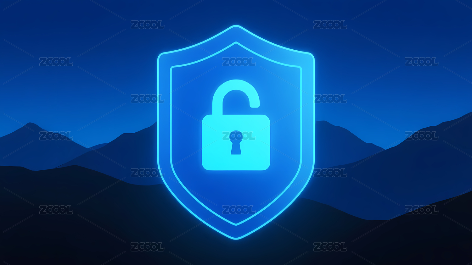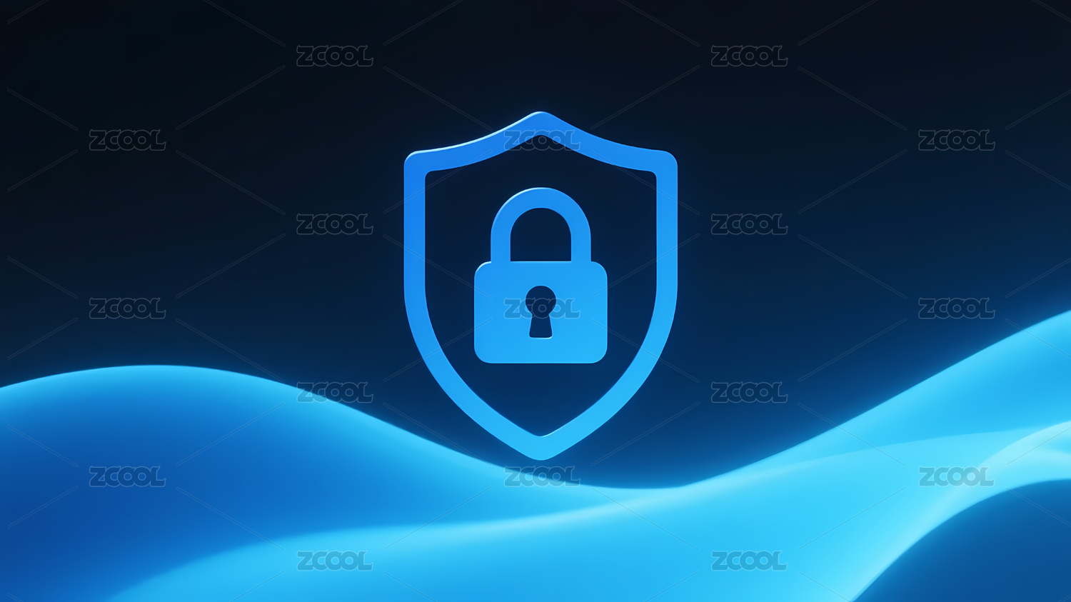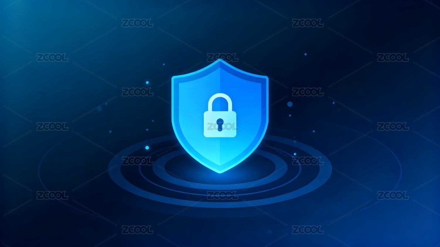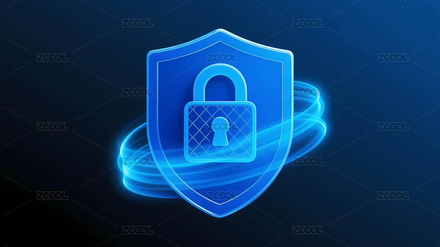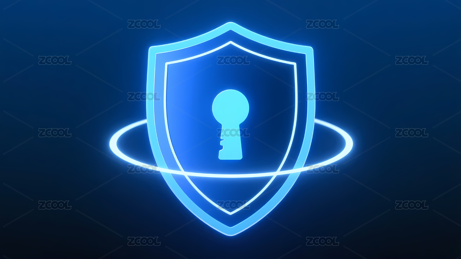 蓝色,科技,发光,深色,轨道,盾牌,安全,图标,防护,锁
