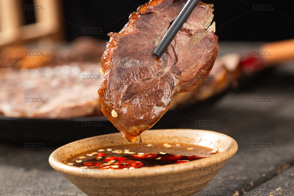 酱牛肉酱肉特写黄色莫兰迪色系背景