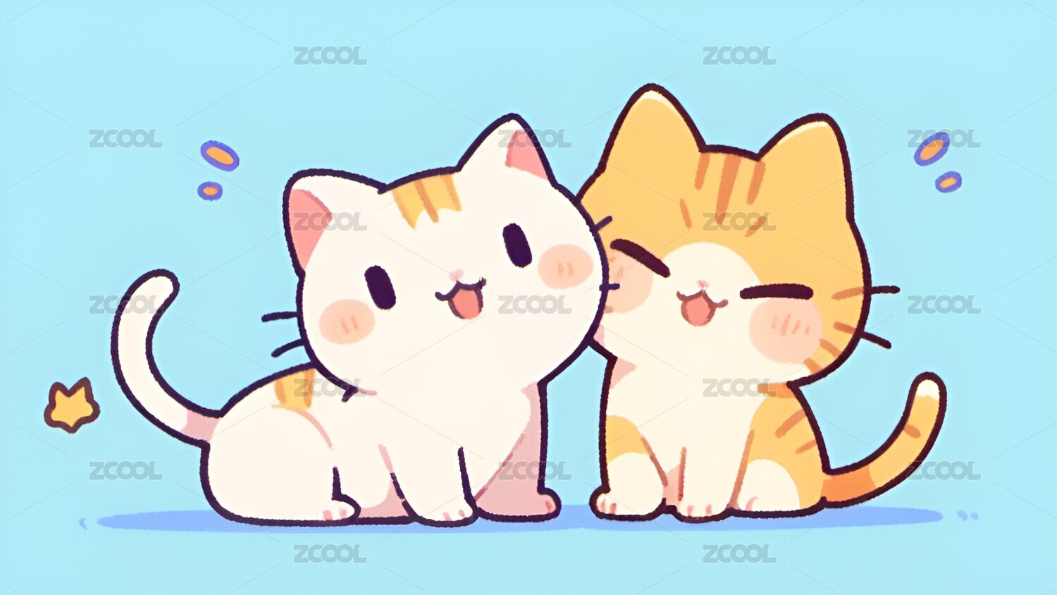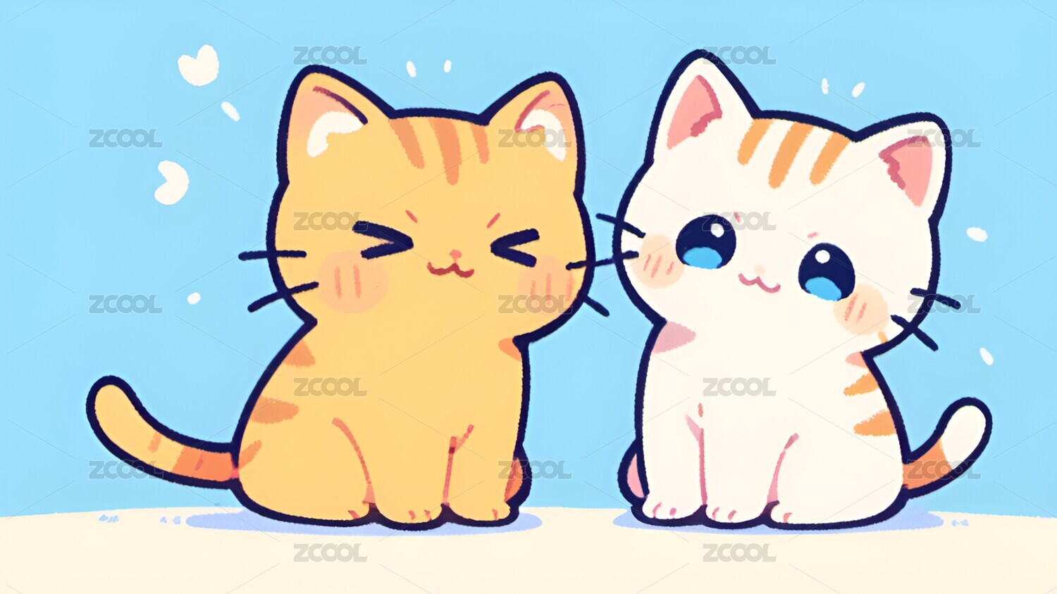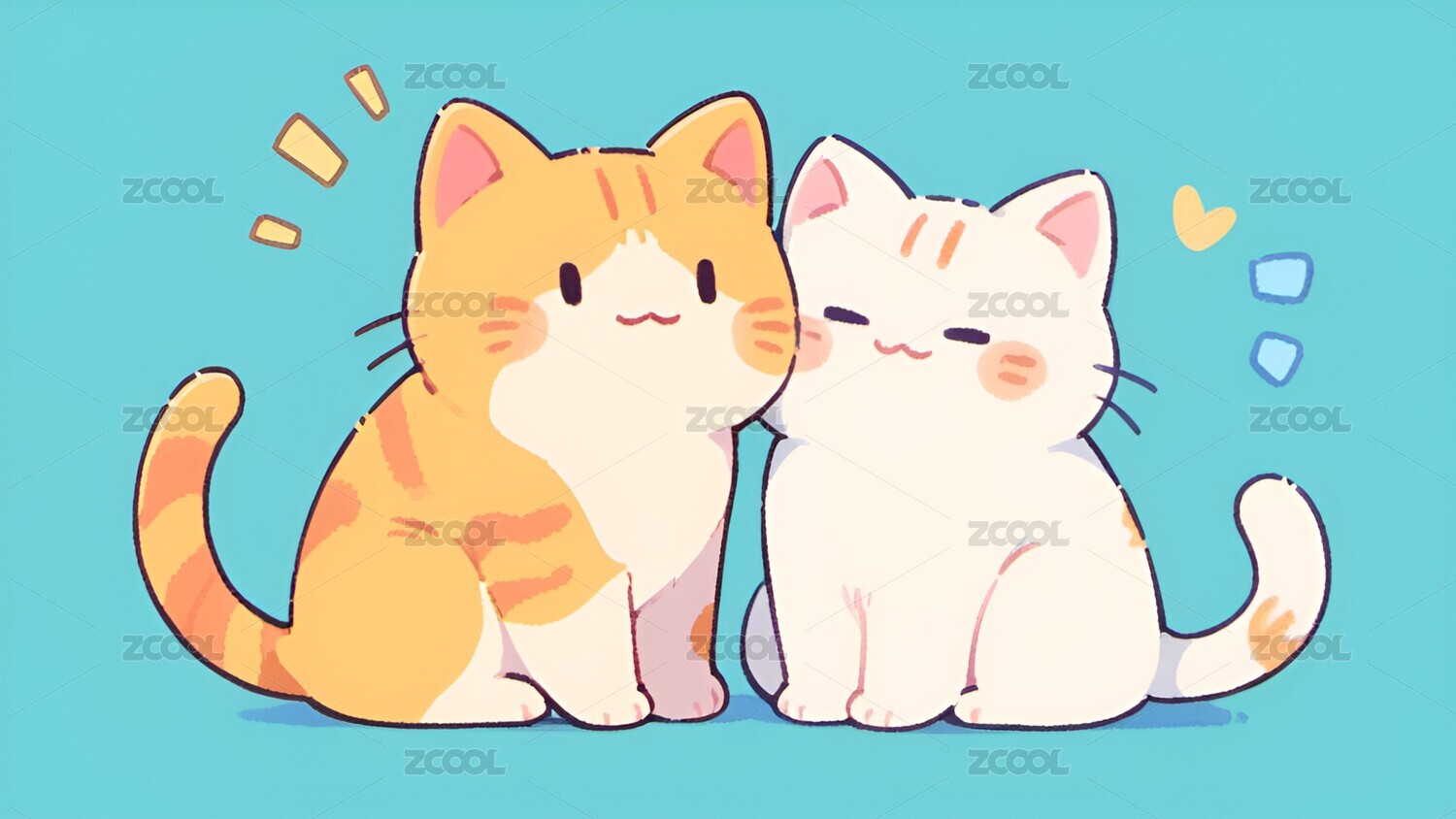 卡通,小猫,猫,可爱,动物,壁纸,插画,治愈