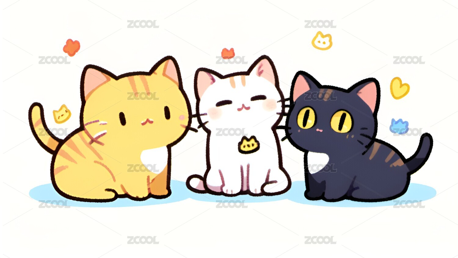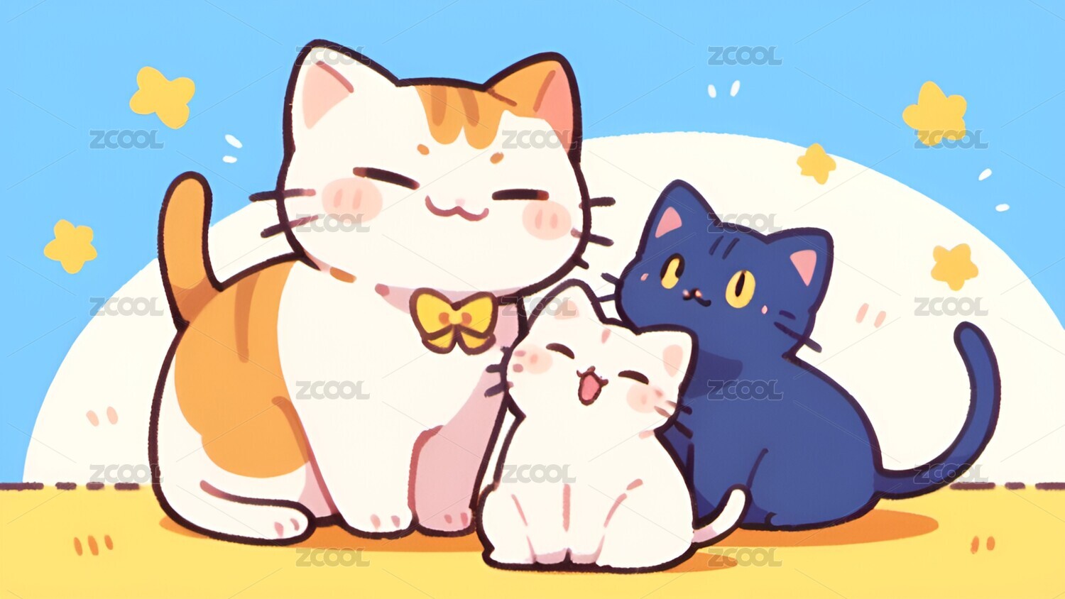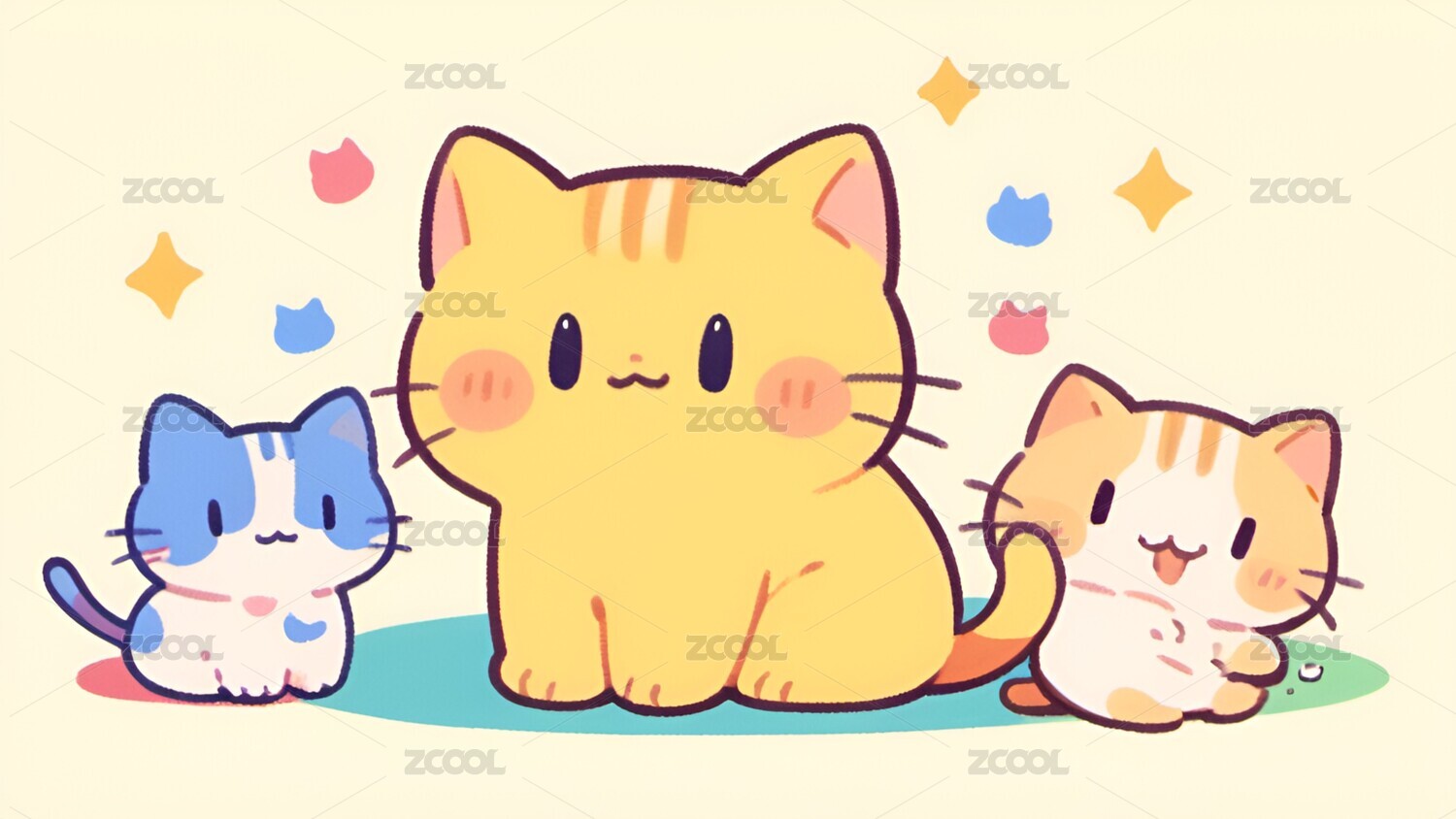 卡通,小猫,猫,可爱,动物,壁纸,插画,治愈