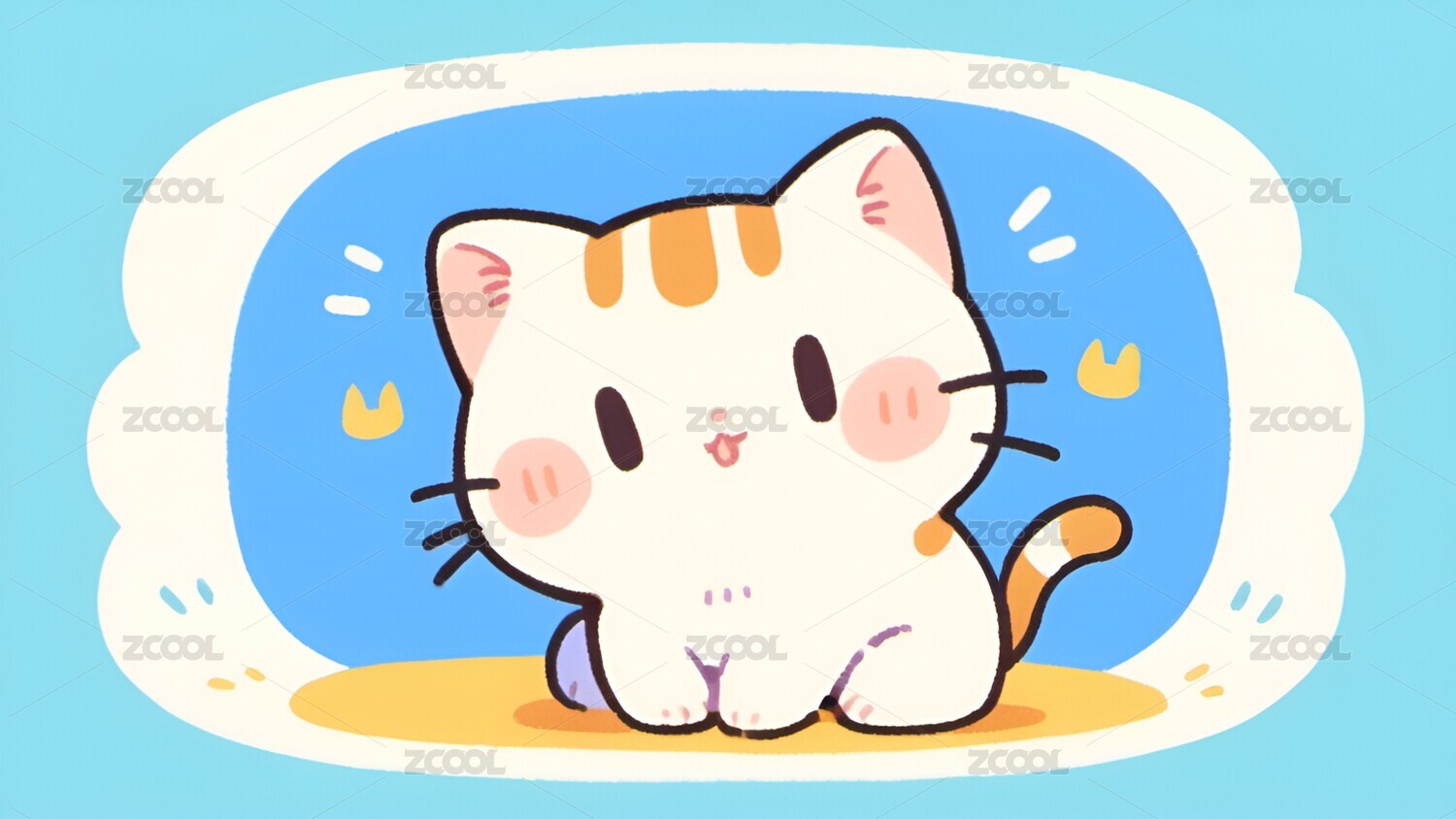 卡通,小猫,猫,可爱,动物,壁纸,插画,治愈