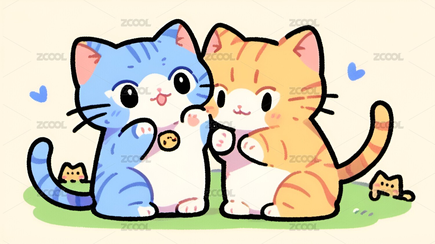 卡通,治愈,小猫,猫,可爱,动漫,漫画,插画,壁纸