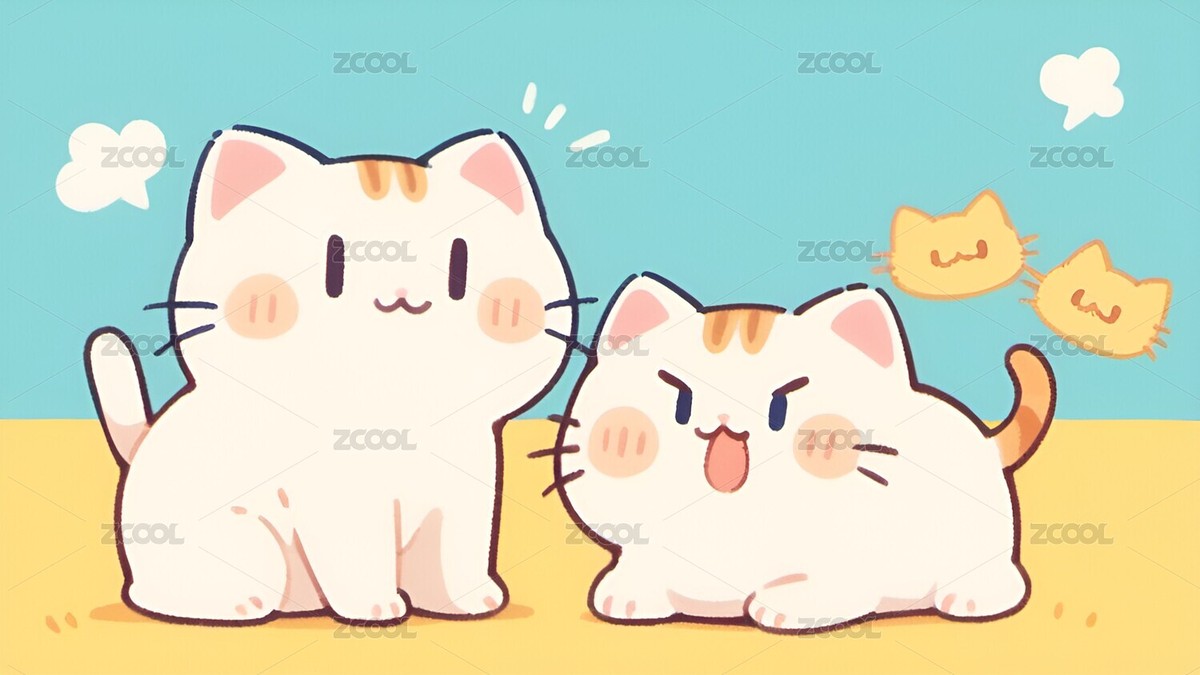 卡通,治愈,小猫,猫,可爱,动漫,漫画,插画,壁纸
