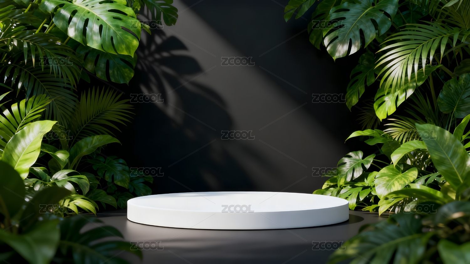 热带植物与白色展台背景