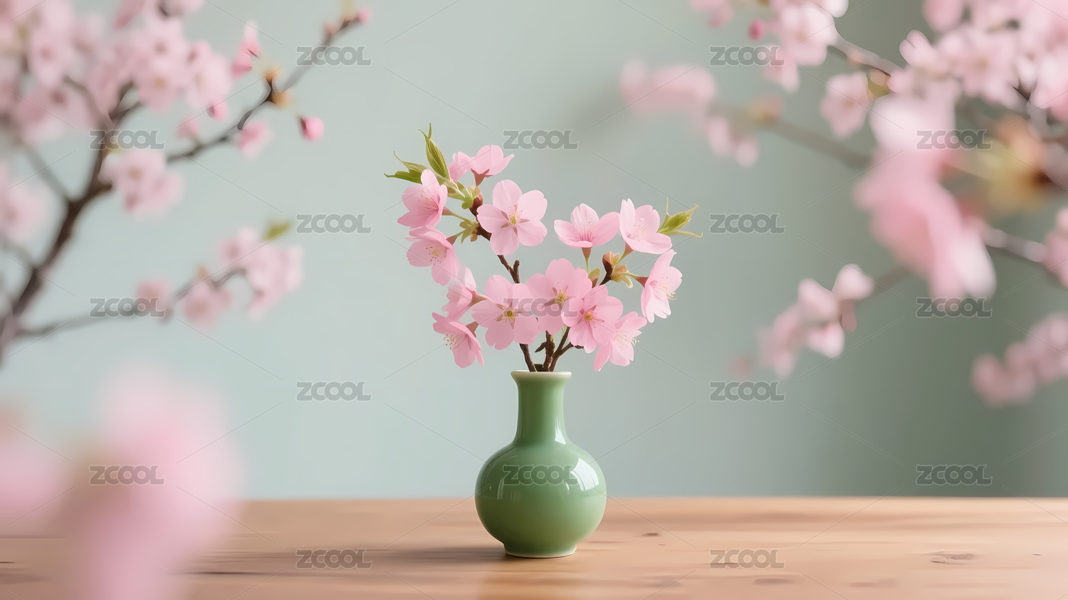 绿色,花朵,清新,自然,粉色,背景,装饰,渐变,花瓶,静物