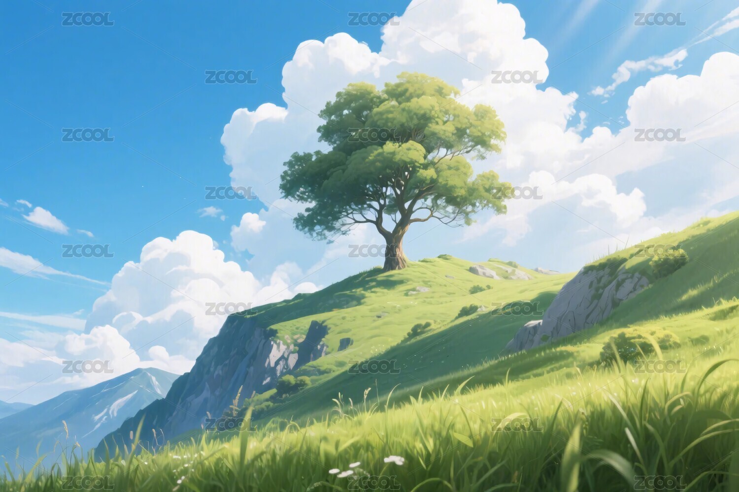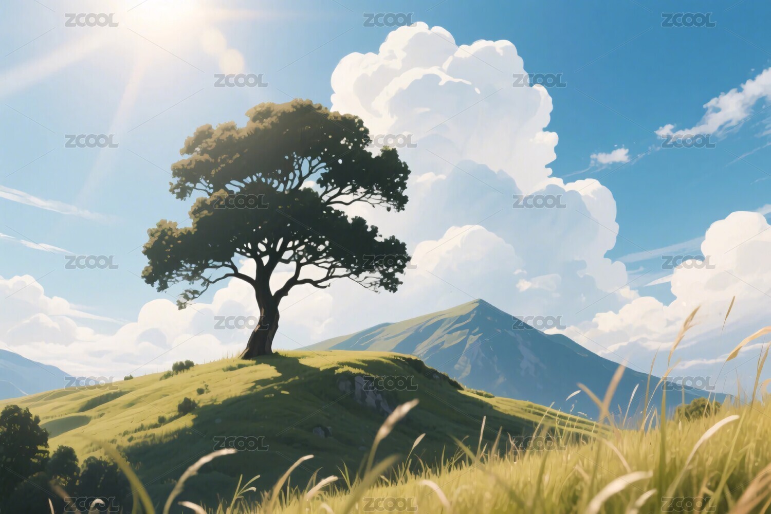 复古日漫 山坡自然风景