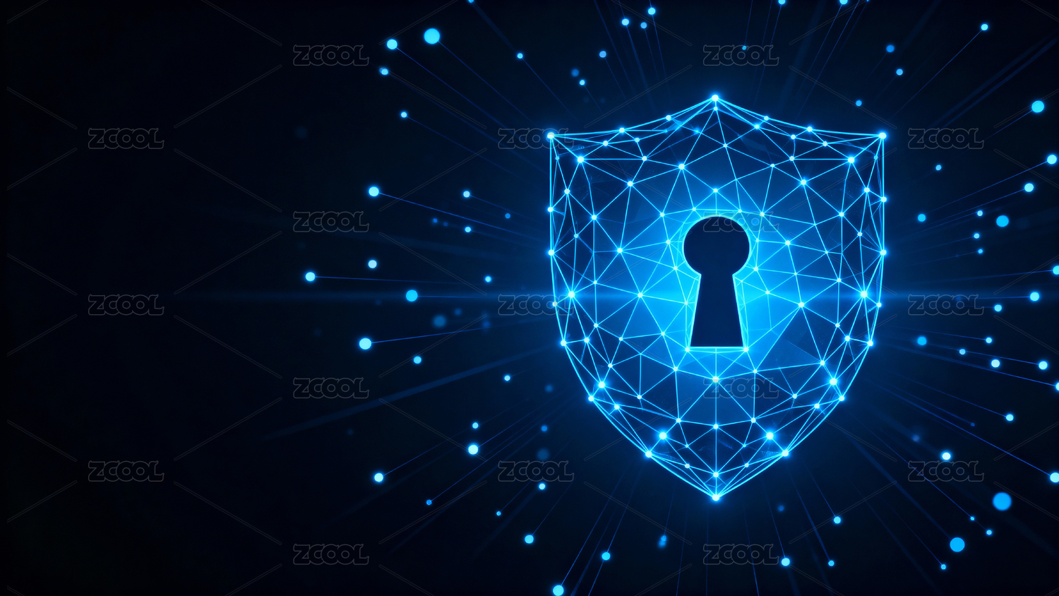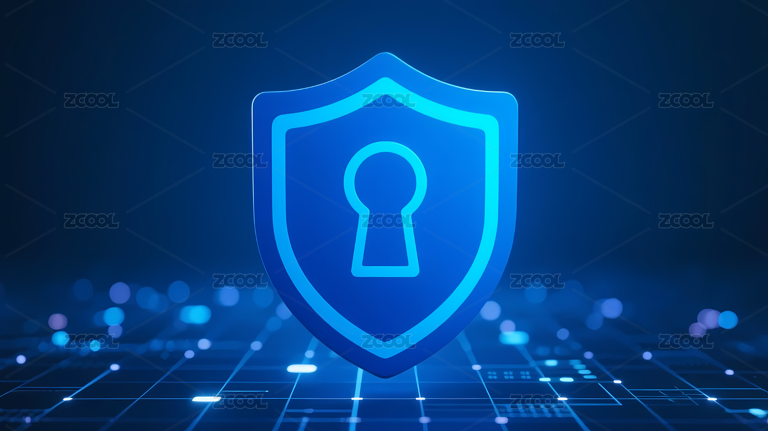 科技,线条,网格,光晕,发光,渐变,深蓝,盾牌,安全,钥匙孔