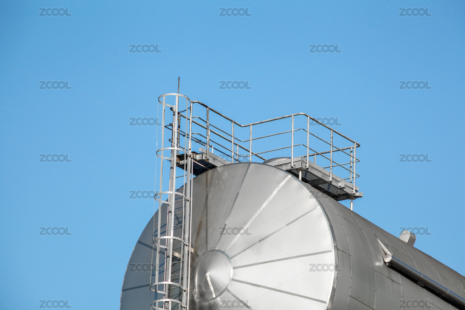 蓝天下的中国北京首钢遗址工业公园中废弃的工业设备