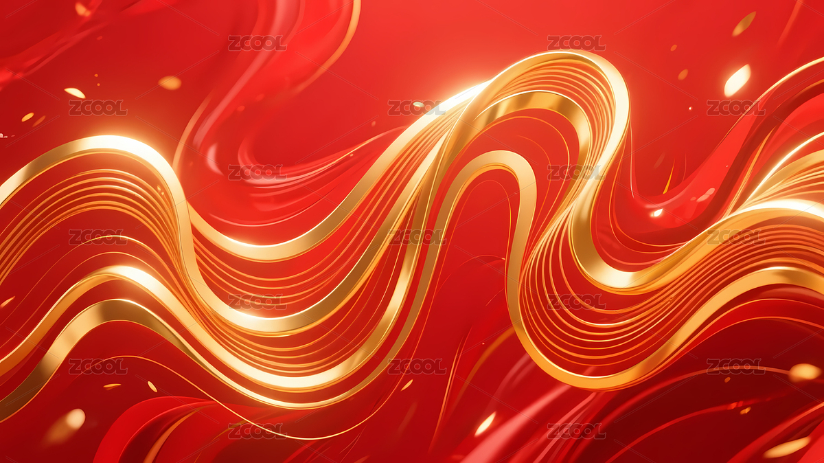 红色,艺术,渐变,动感,抽象,金色,波浪,流动,活力,艳丽