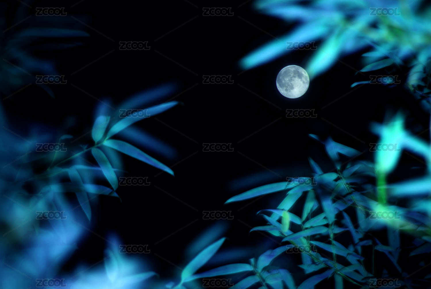 竹林满月夜景