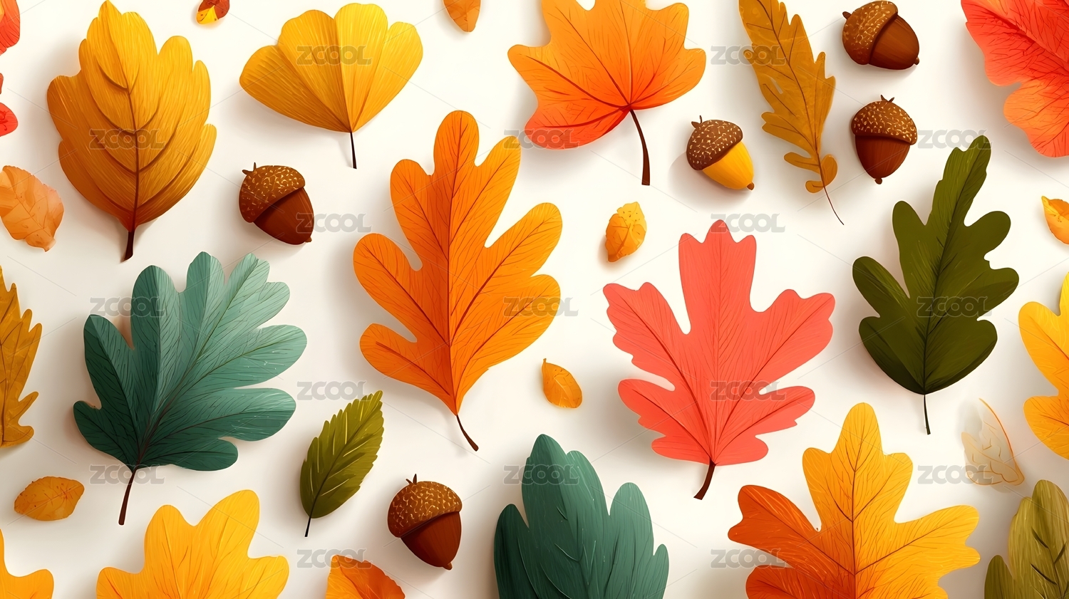 绿色,黄色,红色,自然,温暖,落叶,橡果,秋天,橙色,棕色