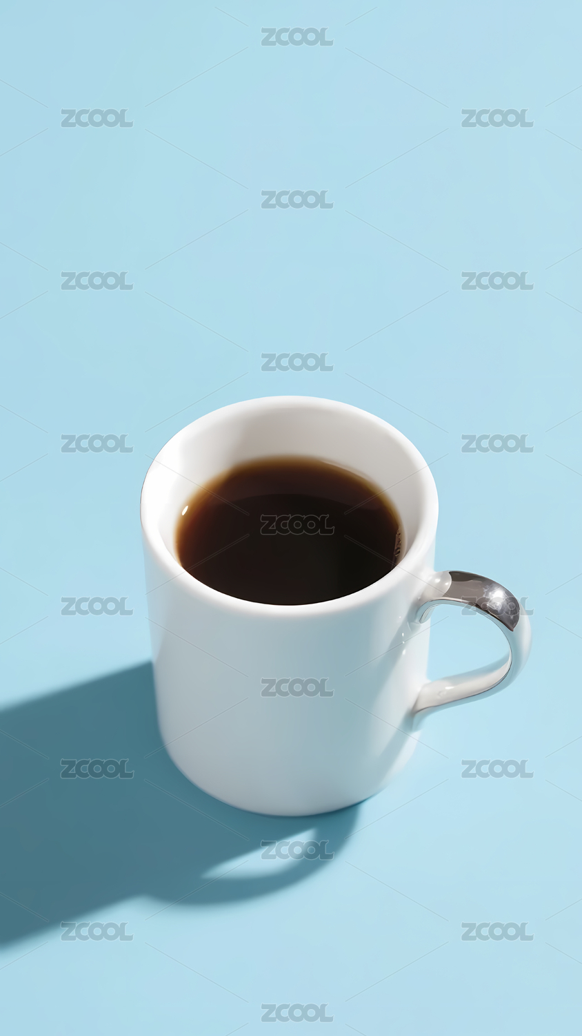 现代,简洁,背景,棕色,白色,银色,杯子,液体,把手,浅蓝