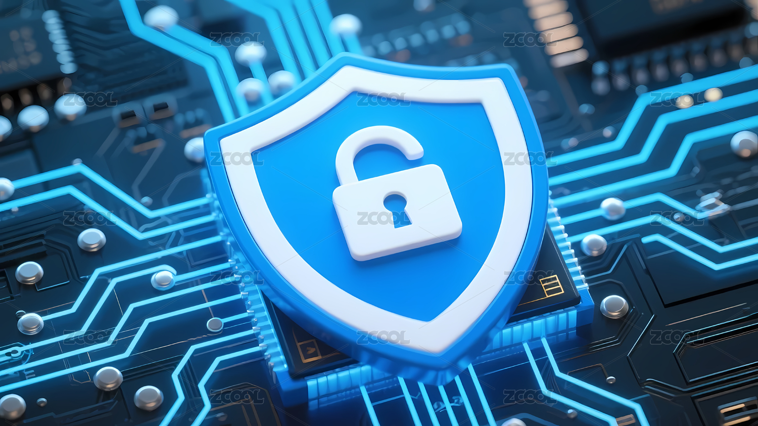 电路,蓝色,发光,科技,深色,背景,安全,锁,防护,图标
